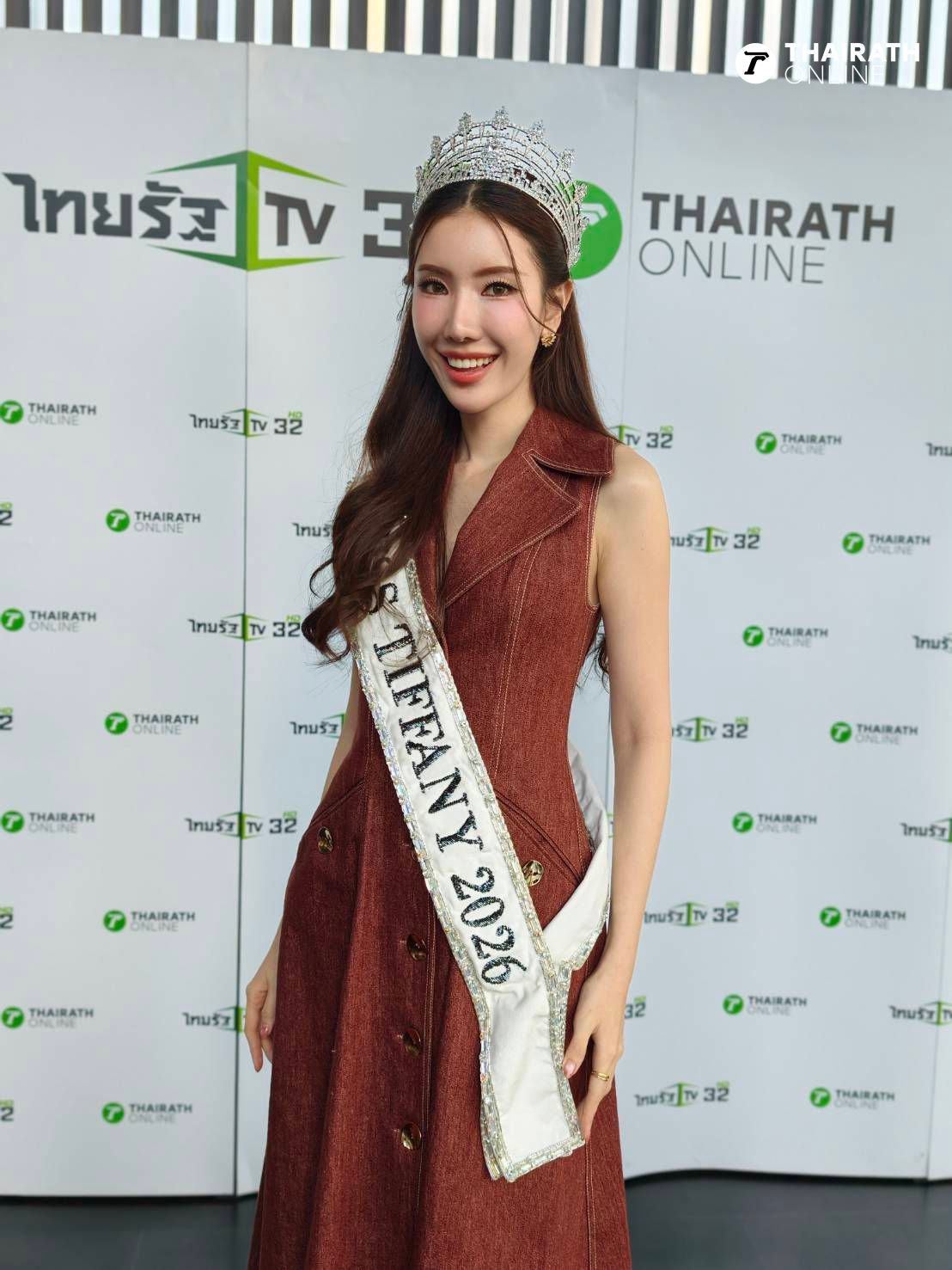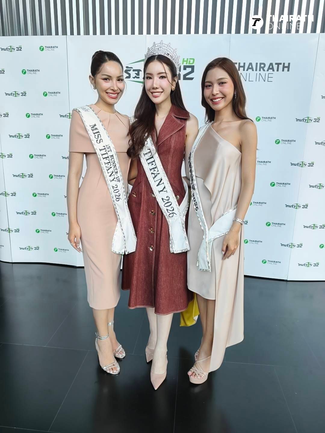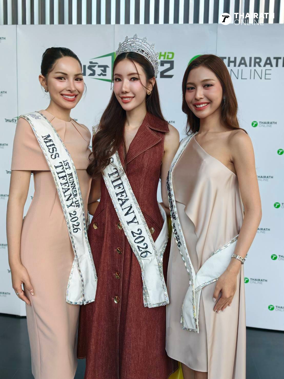 Recently, Thairath Entertainment interviewed Book Theerachaya Pimkitidech, Miss Tiffany 2026, along with Maprang Pimrata Pongchaiwiwat, first runner-up Miss Tiffany 2026, and Seagames Mintthita Ondam, second runner-up Miss Tiffany 2026 regarding the incident, after the three thanked the media at Thairath TV Building 17.