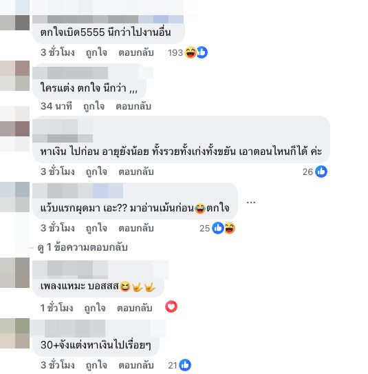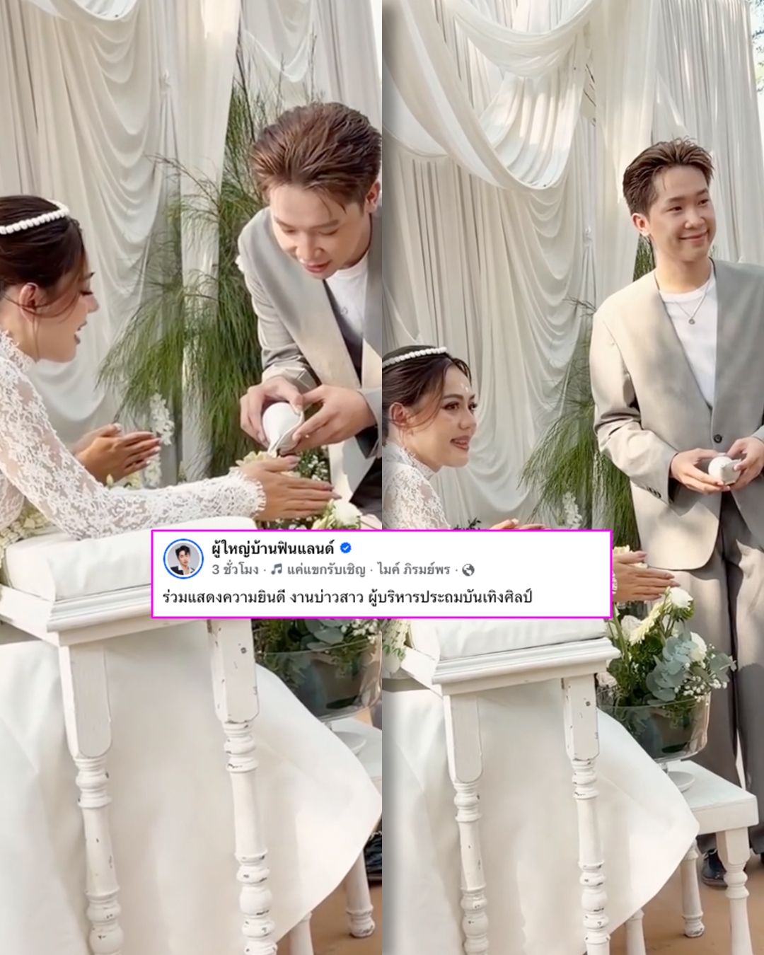 After the clip was shared, netizens rushed to comment massively, unanimously saying they thought it was the wedding of the ex-wife. (Praewpraw Sangthong) This caused a collective gasp, with captions stating, “Congratulating the bride and groom, executives from Prathom Entertainment Arts.”