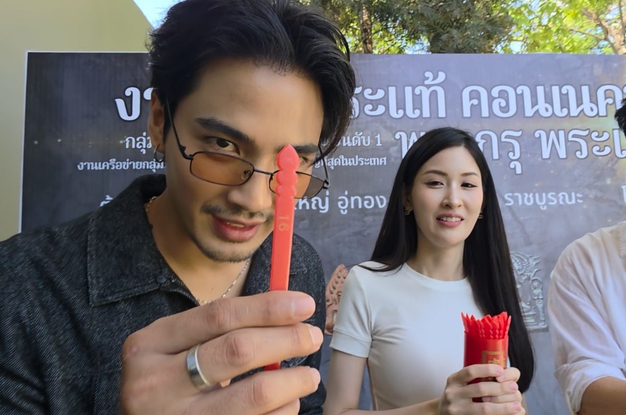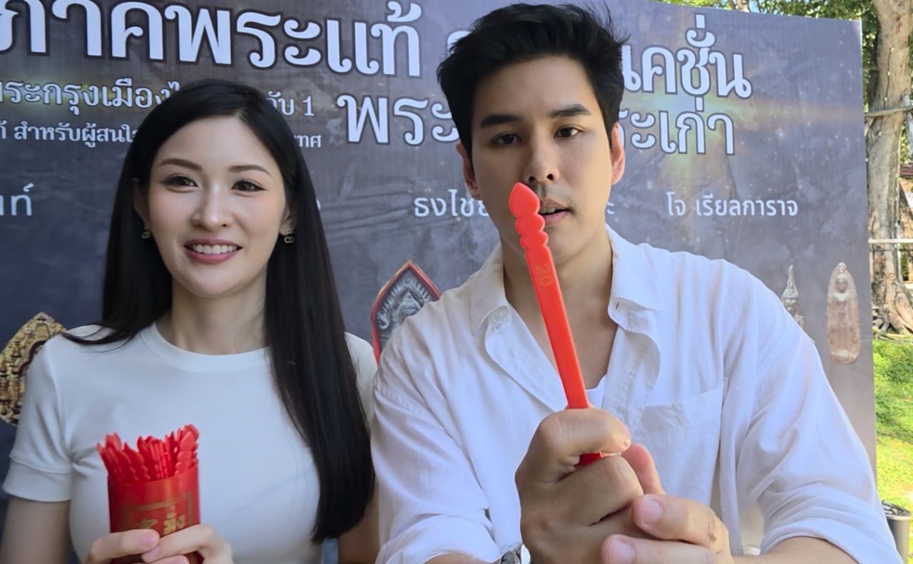 - Meanwhile, Channel 7 actors led by Aun Akaraphat, Golf Anuwat, and Bew Natthaphon, as newer generation stars devoted to superstition, traveled to attend the “Ancient Buddha Relics” event in Suphanburi.And of course,at such an auspicious event—especially on a day awaited by lottery hopefuls—missing out on lucky numbers was out of the question. Aun and Bew represented the group by each drawing a fortune stick,receiving numbers16 and 20, respectively.