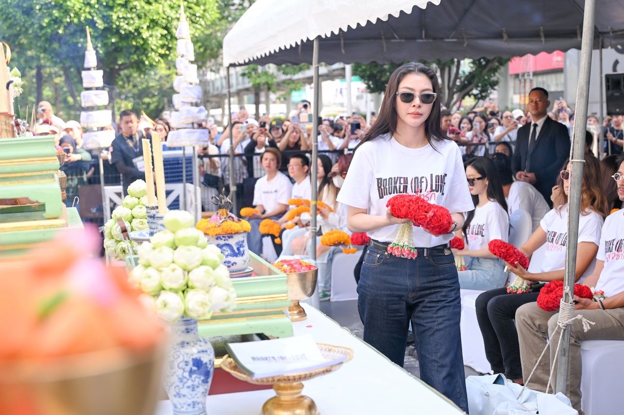 The buzz started strong right from the social media debut when Fabel Entertainment, led by actress Fai Peeriya Malison, introduced their new actor Atom Pariya Piyapanopas last week. Recently, the auspicious opening ceremony for the series "BROKEN (Of) LOVE หัวใจช้ำรัก" was held. This is Fabel Entertainment's first girl-love series, pairing Fai and Atom together for the first time. Talented actors Yarinda Bunnak and Gandhi Wasuvichikit also joined to add color. The event took place at the Trimurti Shrine in front of CentralWorld.