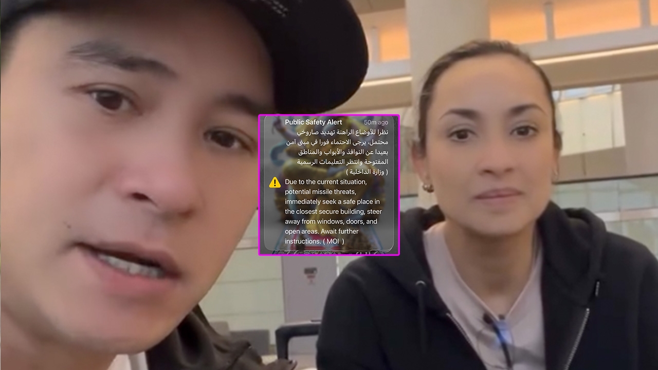 A life-or-death moment! Peter Corp and Katariya English share their thrilling experience at Abu Dhabi airport following a missile threat alert.
