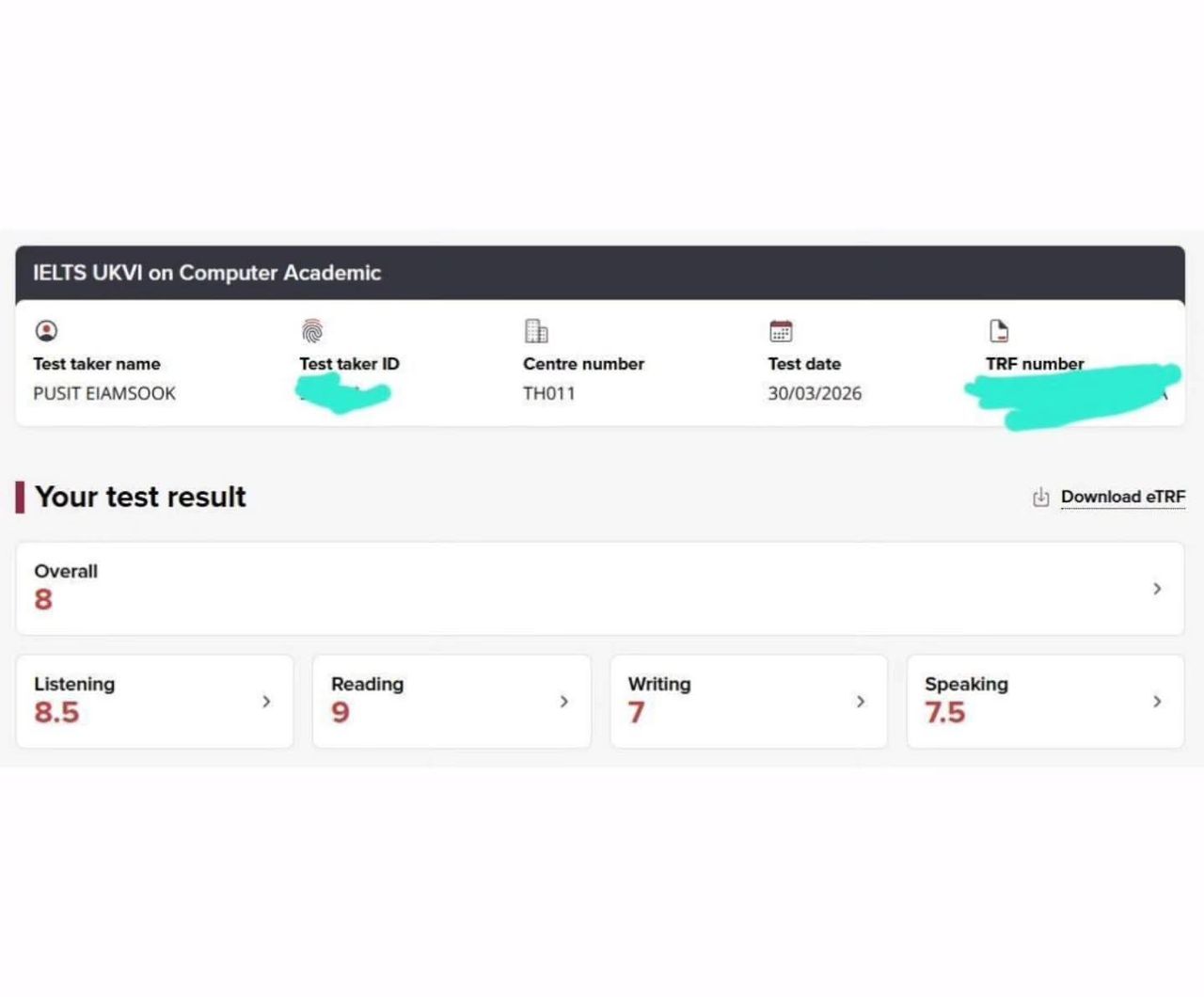 Mother Tuck also proudly shared Poo's IELTS English test result, which was an impressive 8.0, considered an excellent score.