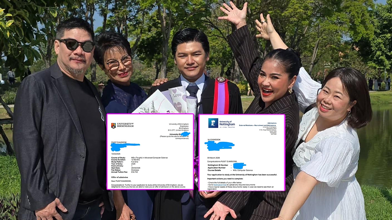 It became a deeply touching story when Tuck Siriporn announced the good news about her beloved son, Poo Phusit, who is preparing to enter world-class universities to pursue a master's degree in England.