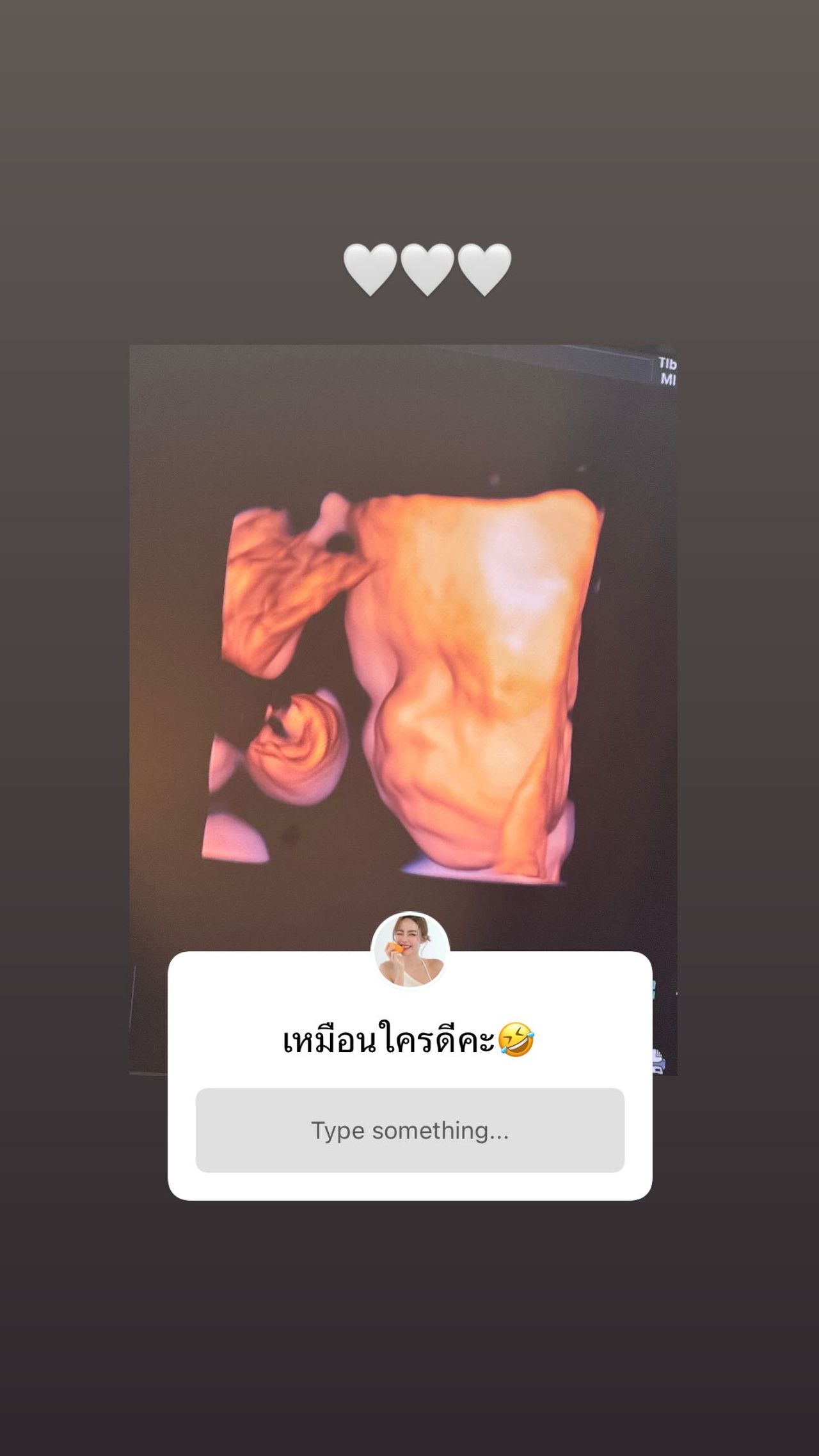 Phai revealed an ultrasound image where her daughter's face is clearly visible, showing a beautifully prominent nose, a definite inheritance from her mother. She excitedly asked fans to help guess, “Who does she look like? 藍”