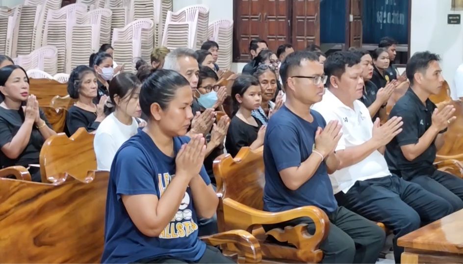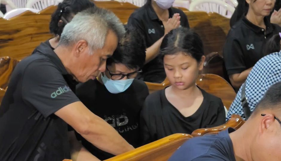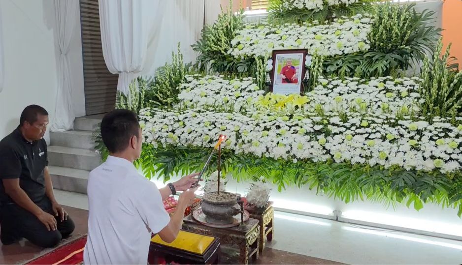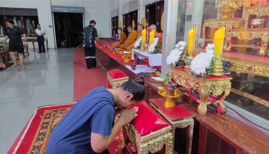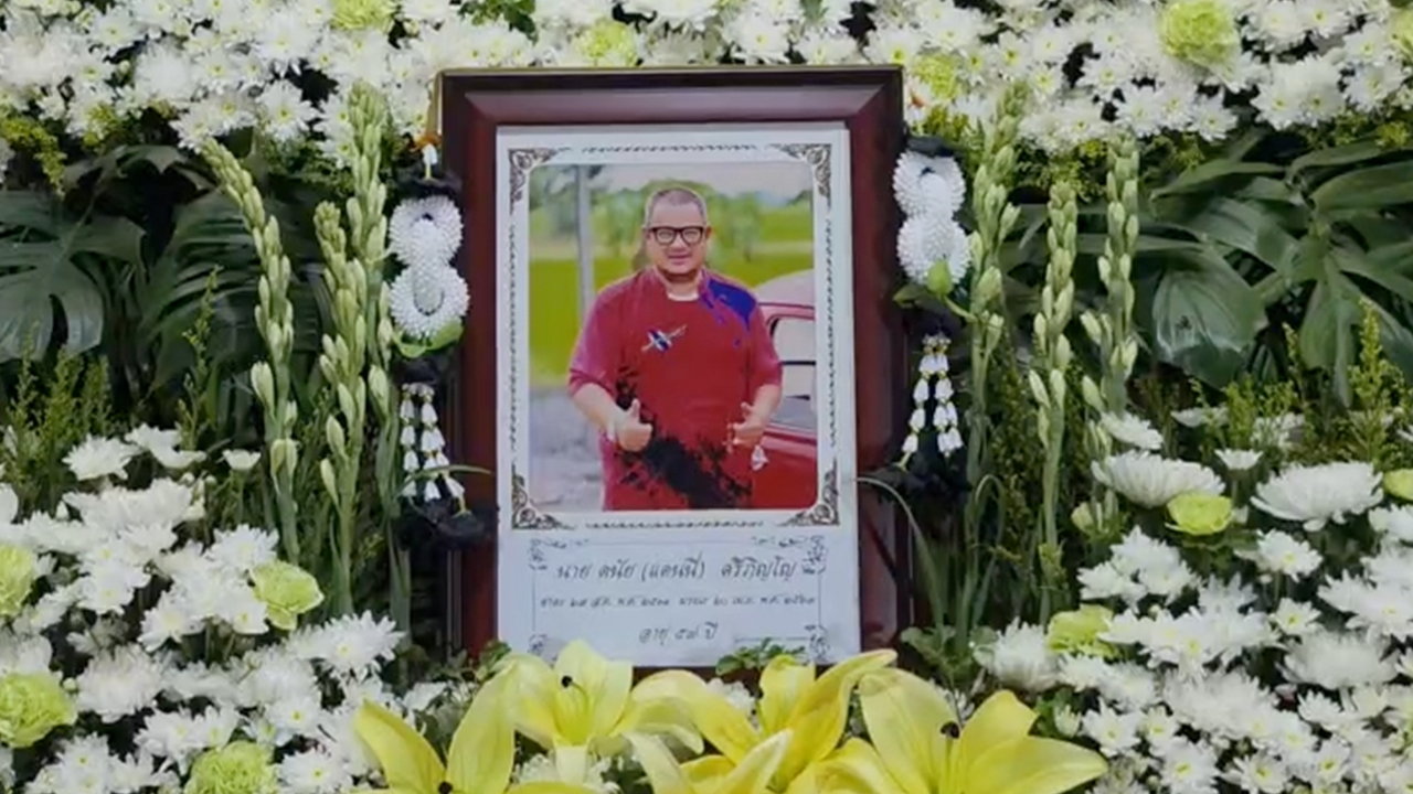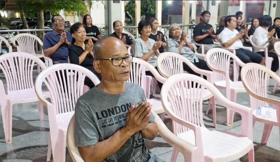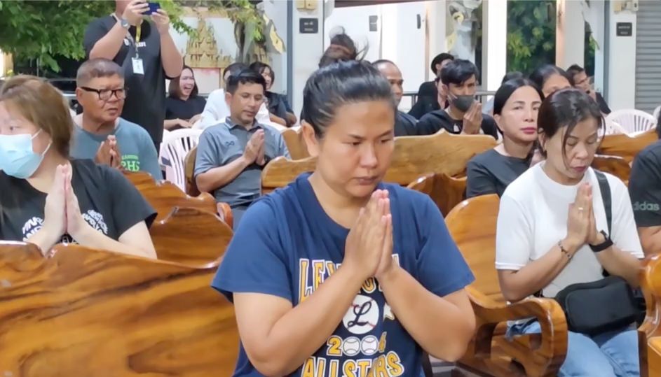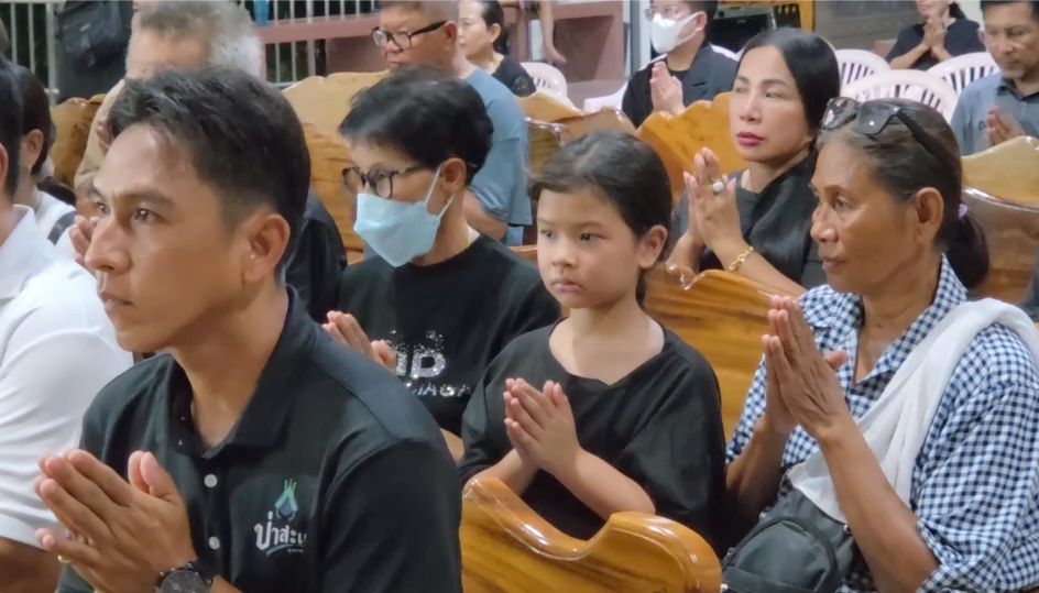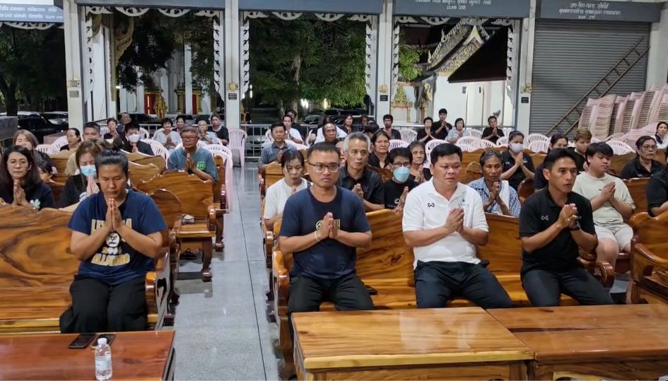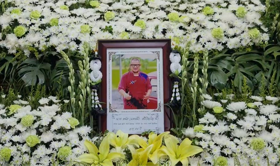 the funeral for Danny was held at Wat Pa Sa Kae, Pa Sa Kae Subdistrict, Doem Bang Nang Buat District, Suphanburi Province. Tonight marked the first night of the funeral chanting ceremony, filled with sorrow. The wife, daughter, relatives, villagers, and the wife’s former school friends gathered as hosts and attended the first night of chanting with over 100 people present.