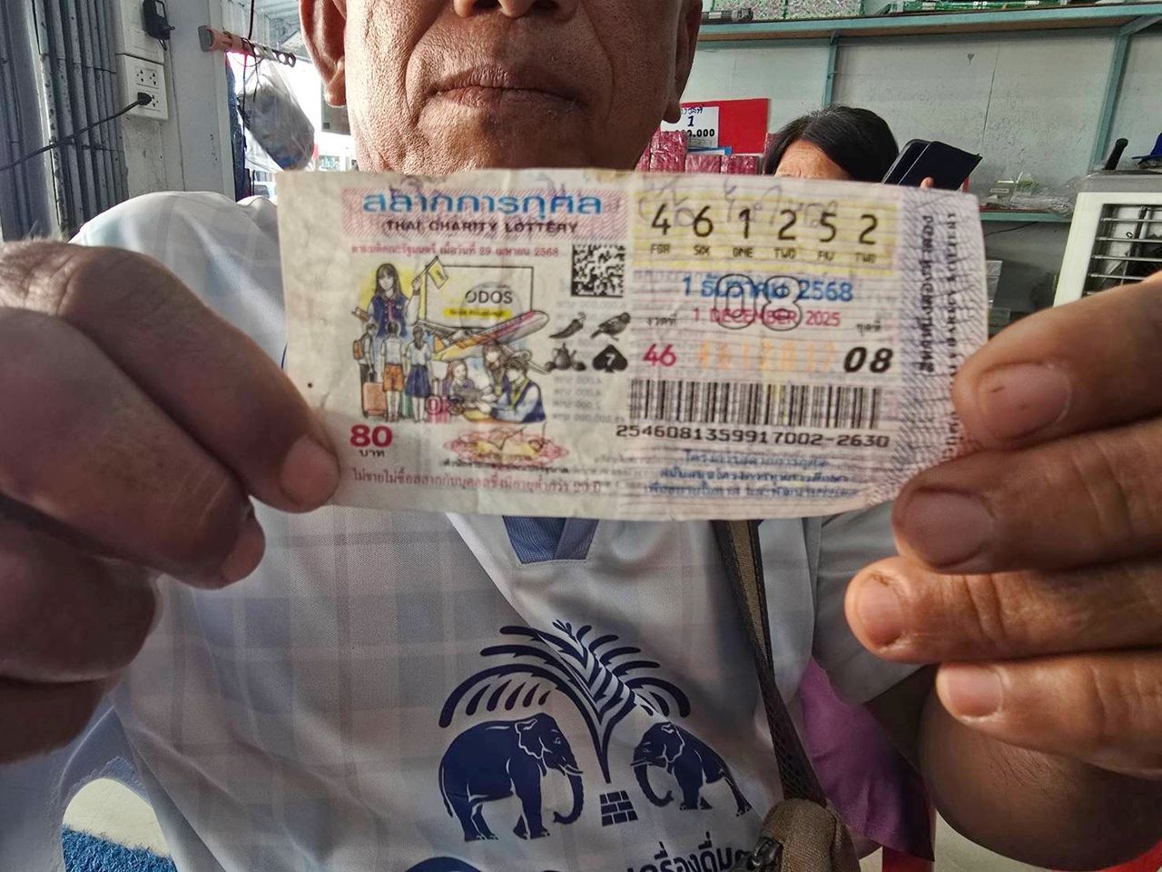 A Khok Tum Subdistrict Administrative Organization employee had exceptional luck by purchasing a lottery ticket with a favored number from a street vendor at a funeral and was delighted to win the first prize, receiving a major 6 million baht prize.