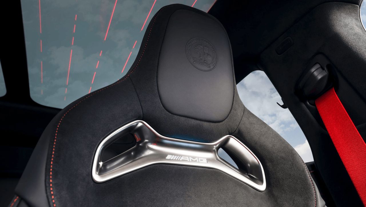The Response Control system adjusts the electric motor's throttle response. The Agility Control system alters the vehicle's cornering behavior, while the Traction Control system modifies settings across nine levels of slip control. The seats are specially designed to support lateral movement during what AMG calls dynamic cornering. It features a special AMG steering wheel with various buttons, comfortable rear seats designed for two (or optionally three) passengers, and a panoramic glass roof with adjustable tint. Beyond these, it offers what affluent buyers expect from a luxury, powerful Mercedes: diamond-pattern stitching, premium ambient lighting, and a wide range of optional materials and trim.