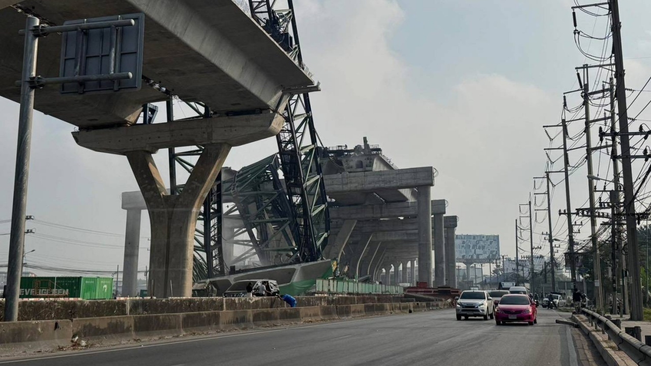 A construction crane collapsed again on Rama 2 Road. Initially, vehicles were crushed, with suspected injuries and fatalities reported.