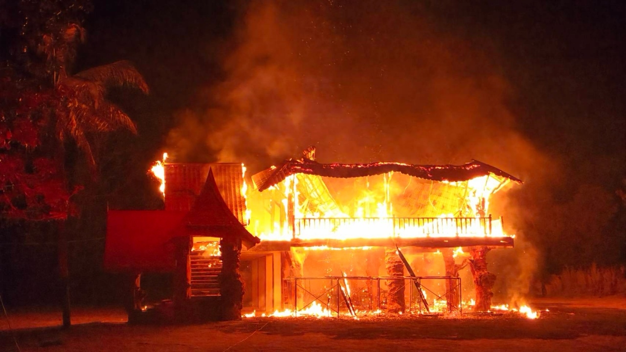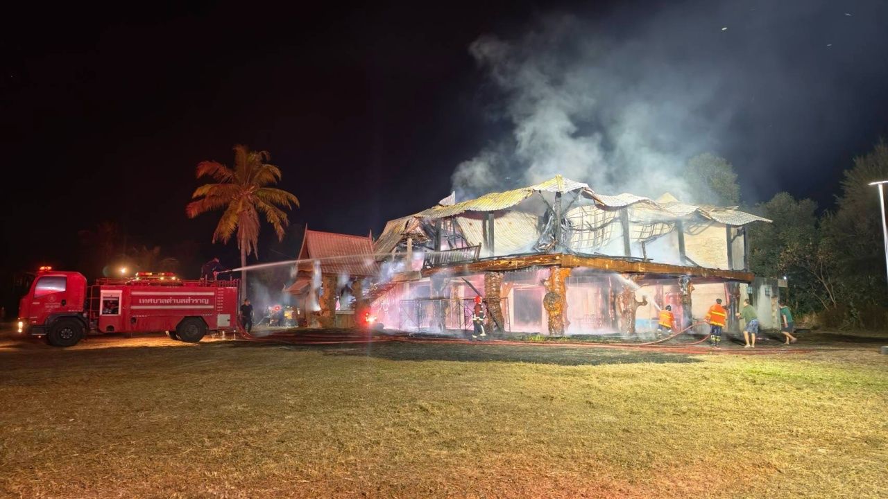 A fire broke out late at night at a traditional wooden house owned by a former subdistrict mayor in Yasothon. The flames spread throughout the entire house, causing damages exceeding 10 million baht, excluding more than 30 sacred amulets and Buddha statues. Authorities are awaiting a detailed investigation into the cause of the fire.