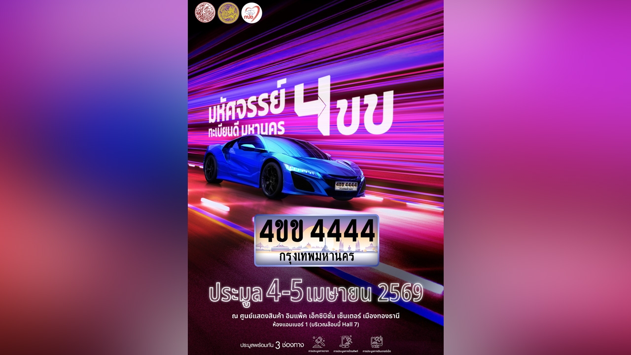 The Department of Land Transport invites bids for special vehicle license plates under the "4ขข" special category on 4-5 April 2026. Interested parties can pre-register at www.tabienrod.com,
