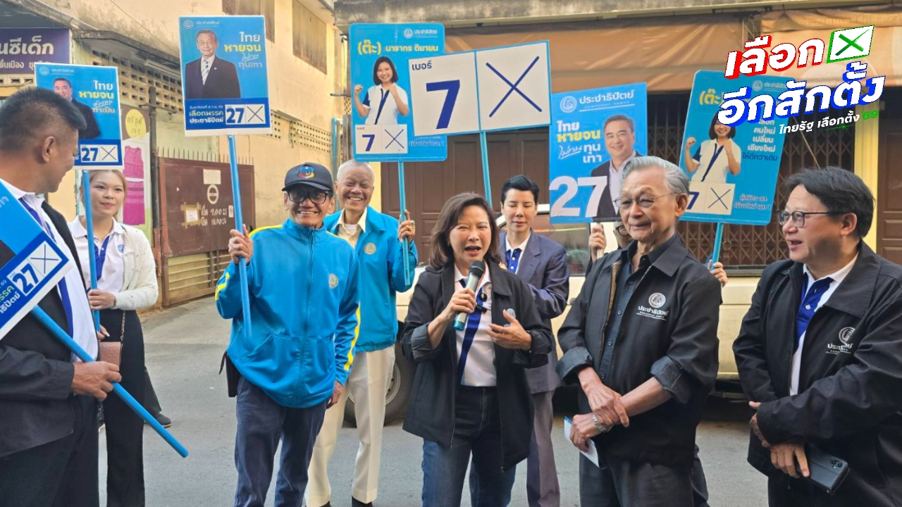 Chuan's team then traveled by van to Lampang to support Amolaya Jentawanich, Democrat Party candidate for Lampang Constituency 1, number 7, seeking votes from Lampang residents. They conducted a campaign parade and spoke about the party’s policies focusing on clean politics—rejecting 'gray capital,' fighting corruption, reducing living costs, guaranteeing agricultural product incomes, and free education through bachelor's degree. This took place in front of the Aomsin fresh market. The afternoon campaign ended in Tak province supporting Warit Meechaiyo, Democrat Party candidate for Tak Constituency 1, number 8, highlighting policies to revive the entire economy and increase Thailand's GDP growth to 5%, all under good governance led by Abhisit Vejjajiva.