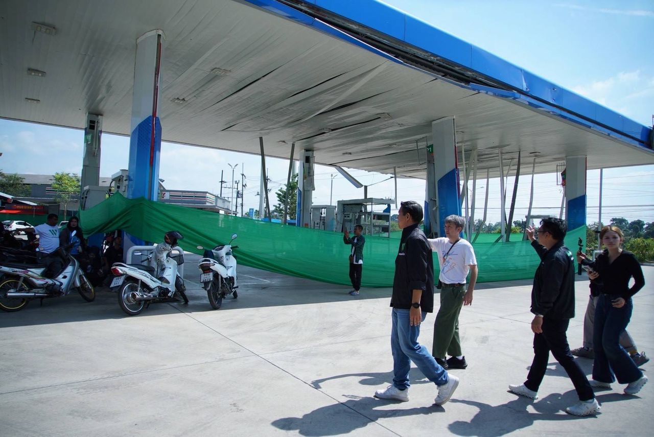 Later, Kanwee, along with the Palwat Party team, took the opportunity to visit the PTT Arunrung Oil Company Limited fuel station in Village 3, Pase-mas Subdistrict. This station was one of five PTT stations damaged by a militant bombing on 11 Jan. They met with Thanongsak Denratsamet and Thansinee Apibalthanakit, the gas station owners, offering encouragement regarding the incident and expressing hope for improvements to prevent further economic impact. The owners reported that operators must recover quickly and repair the station to reopen soon, as employees depend on it. The Southern Border Provinces Administrative Centre (SBPAC) is expediting financial relief. Operators are coordinating with PTT headquarters to request fuel credit during the renovation to ease financial burdens. The convenience store, 7-Eleven, plans to reopen shortly, while the fuel station repairs may take about two months.