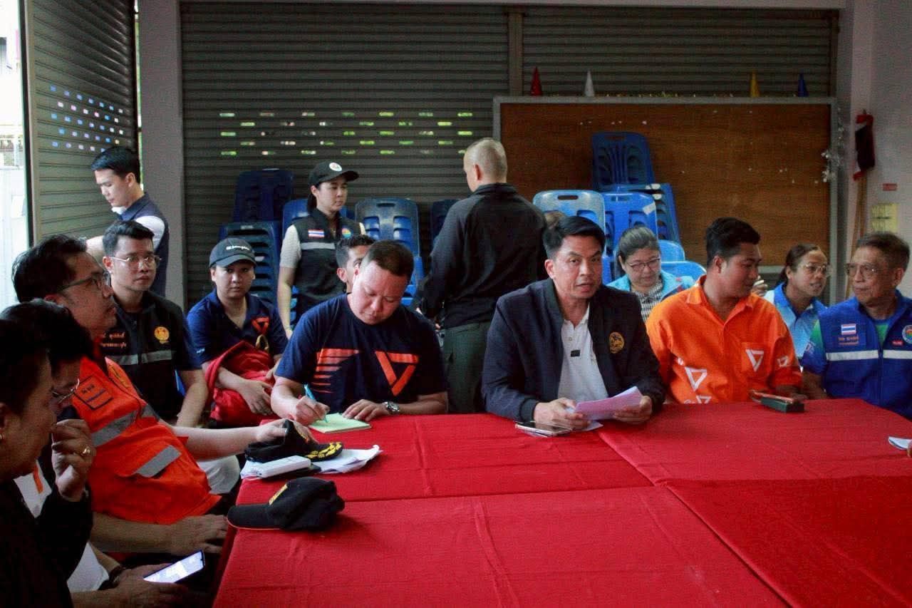Recently, Mr. Somchat has continued monitoring the situation and urgently coordinated with water-pumping personnel to advance the placement of six-inch water pipes to spray water over three areas. Subsequently, Mr. Poonsak Janjampee, party-list MP of the Prachachon Party, arrived at the landfill site to join efforts. Mr. Poonsak proposed measures to the disaster prevention center staff stationed at the landfill entrance and observed that the road used by vehicles from the lower area to the upper landfill site does not meet engineering standards.