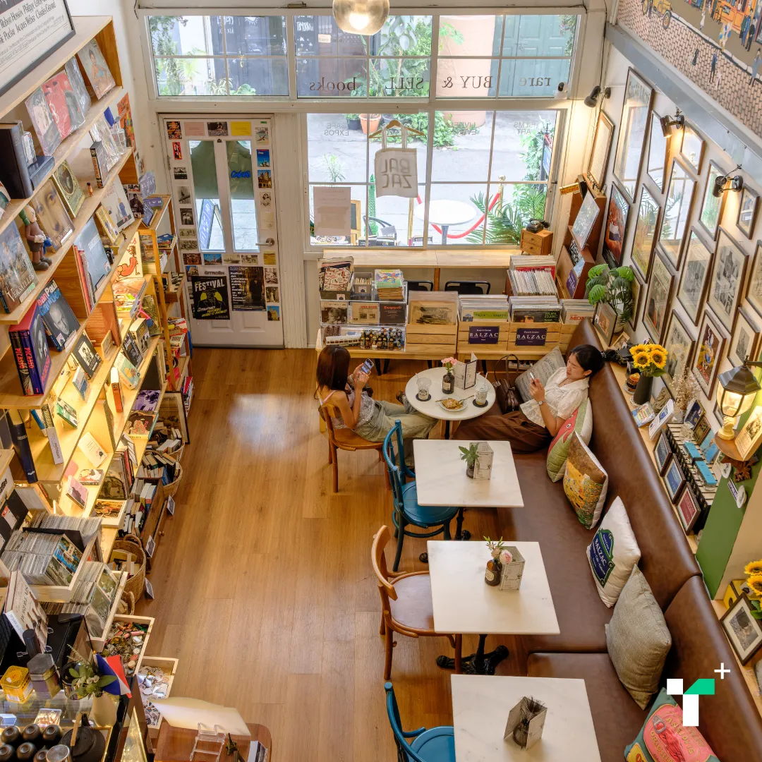 “This place was planned as a bookstore, but now it’s quite a hybrid space. Many Thai influencers come not for the French books at all, but because they like the space and want to take photos. It spread on TikTok and Instagram, and after that, this place became an Instagram Cafe.”