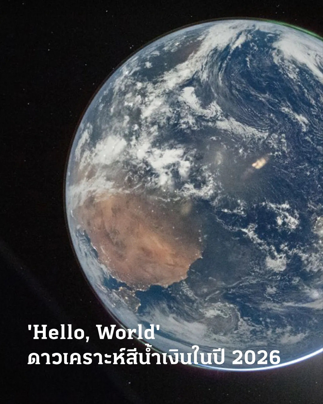NASA released a historic high-resolution image titled “Hello, World,” taken by Artemis II crew at the midpoint between Earth and the Moon. It reveals the vast blue Atlantic Ocean, the glowing atmospheric limb as Earth blocks the Sun, and green auroras at both poles.