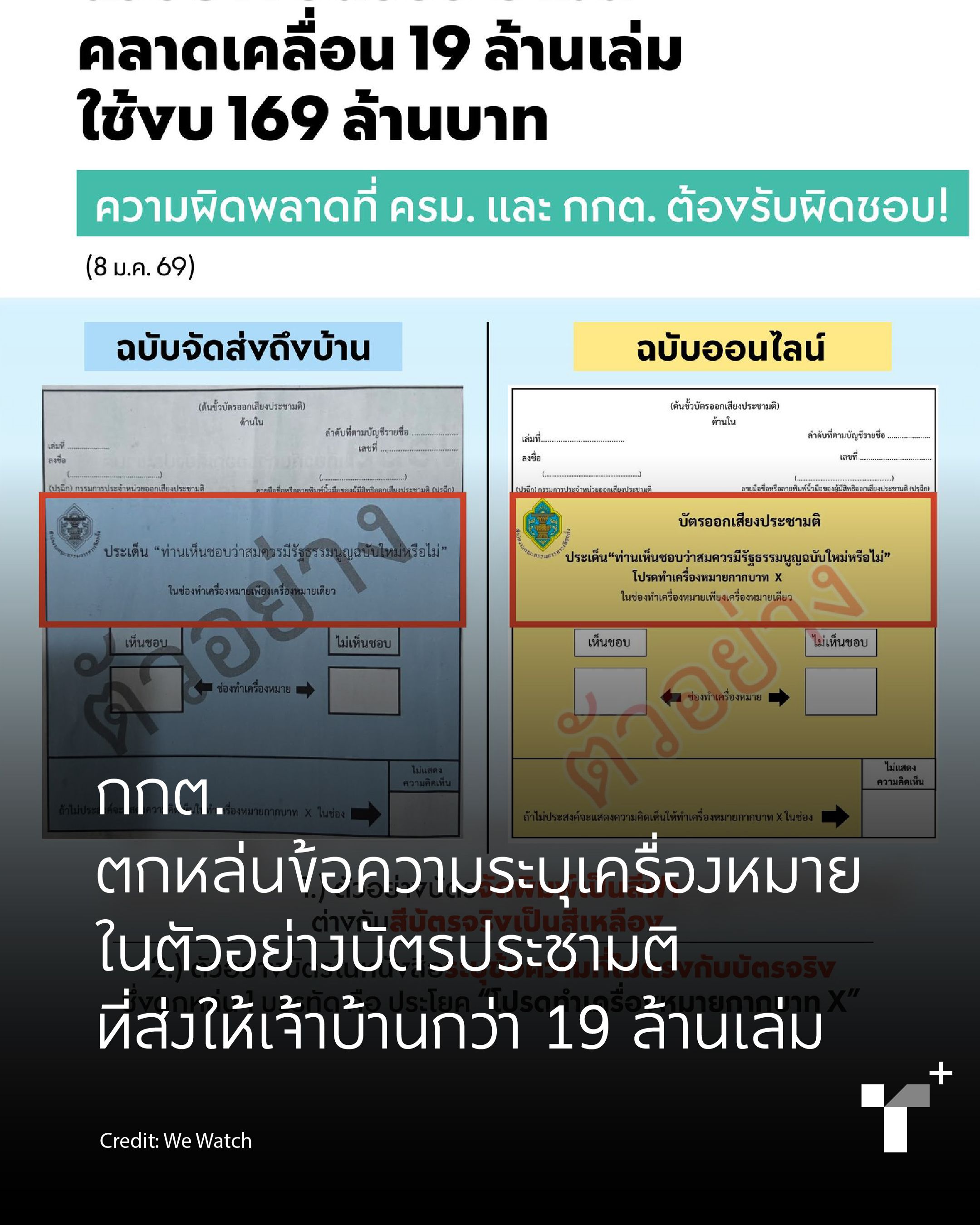 We Watch, an election observation group, stated that the sample referendum ballots distributed nationwide to inform the public omitted clear instructions on the cross mark. Furthermore, the Election Commission printed sample ballots in blue, differing from the actual yellow ballots used on voting day. The commission acknowledged the omission and plans to enhance public relations on this issue. Political parties are allowed to publicize the referendum voting.
