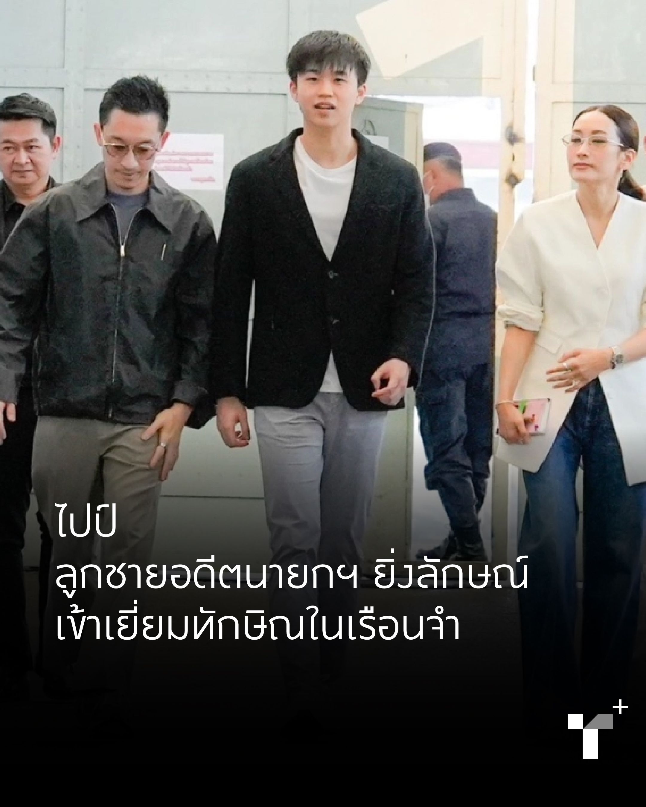 Supasek Amornchat, known as Pipe, aged 23, son of former Prime Minister Yingluck Shinawatra, said he represented his mother to visit Thaksin Shinawatra, traveling with Panthongtae and Pinthongta, along with the Shinawatra family. This was Pipe's first visit to Thaksin after studying abroad since 2019.