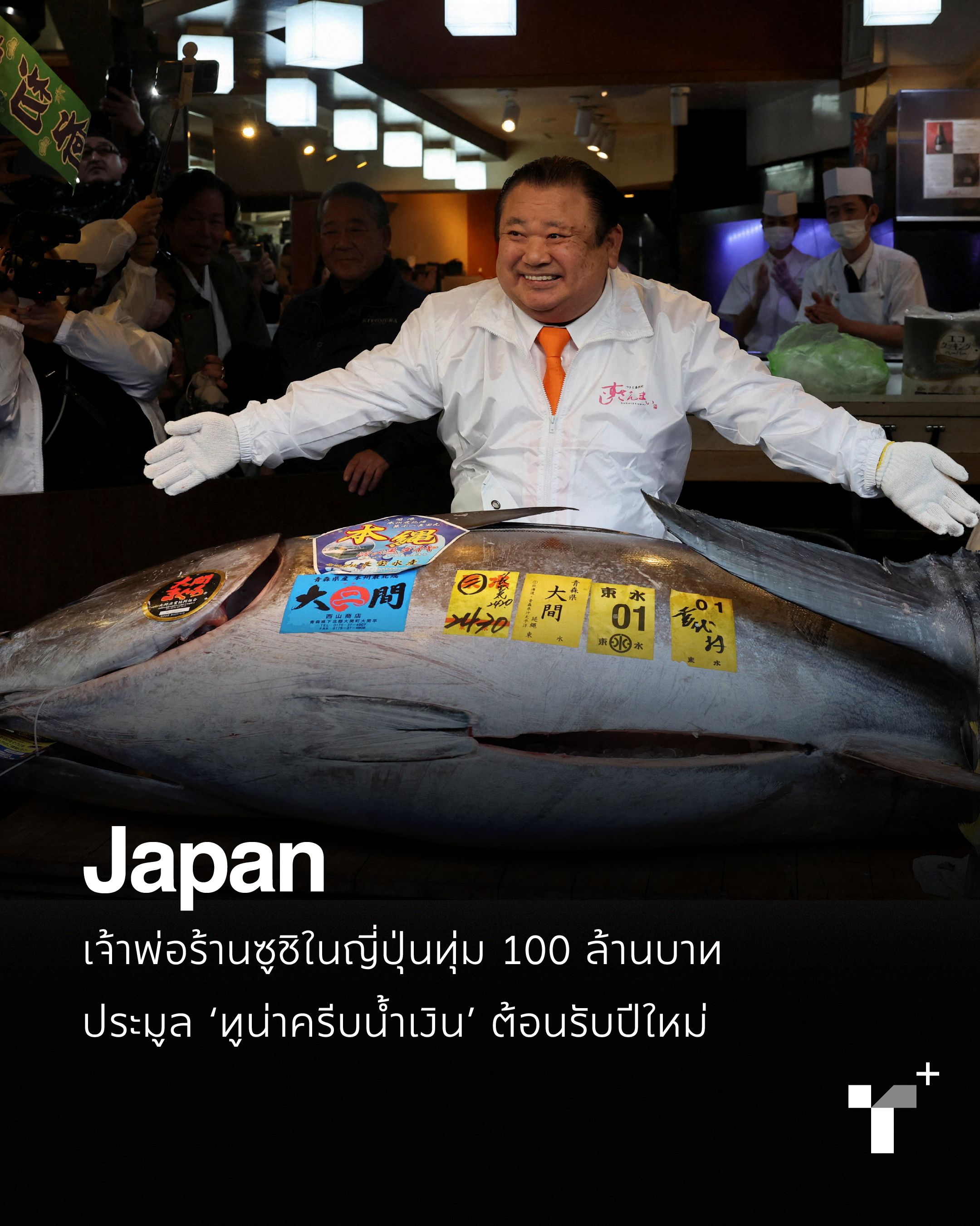 Kiyoshi Kimura, known as the 'Tuna King' and chairman of a famous sushi chain, made headlines again by winning the auction for a massive 243-kilogram bluefin tuna during the New Year's opening auction at Tokyo's main fish market. The winning price was 510.3 million yen, approximately 101.77 million baht, setting a record high since records began in 1999, breaking the previous record of 333.6 million yen set in 2019 following the market's move from the traditional Tsukiji district to a more modern location.