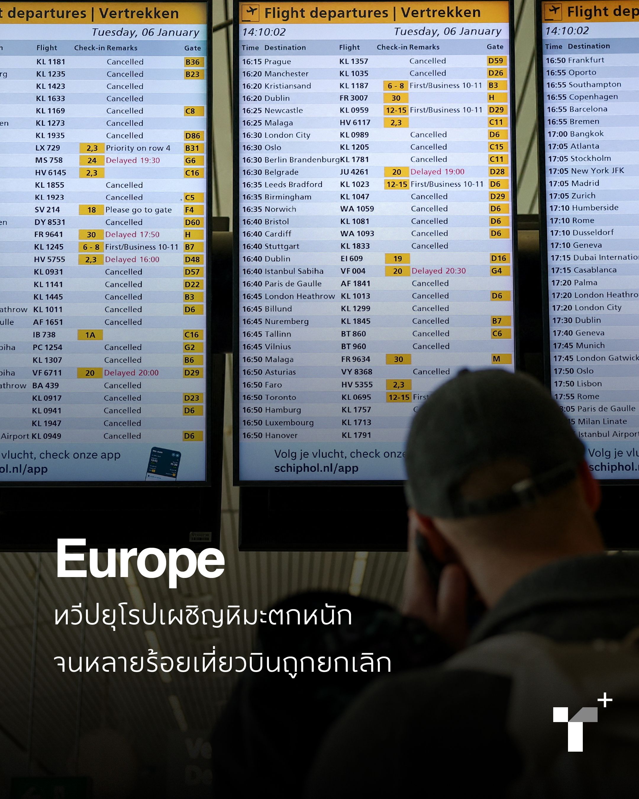 Heavy snow and severe cold disrupted travel across Europe, causing hundreds of flight cancellations and stranding thousands of passengers at airports in Paris and Amsterdam. Additionally, six deaths linked to weather-related incidents were reported on the continent (information as of 9 January 2026).