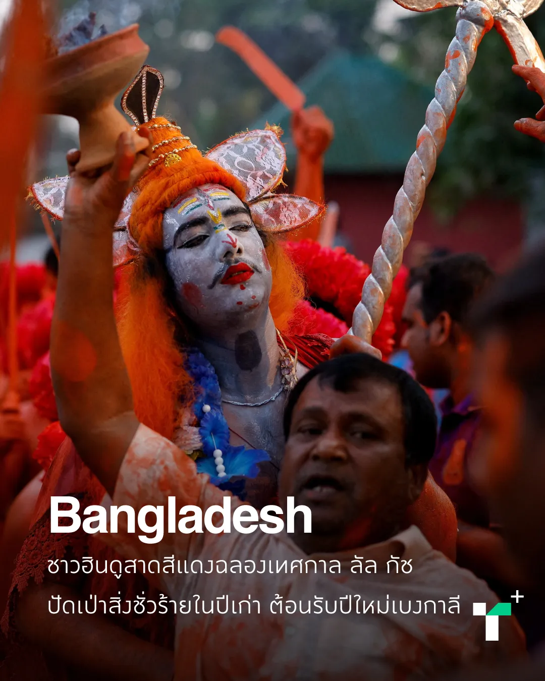 Hindus in Bangladesh continued an ancient tradition during the Lal Kach Festival by covering themselves in bright red body paint and dancing through the streets to dispel evil and welcome prosperity for the Bengali New Year.