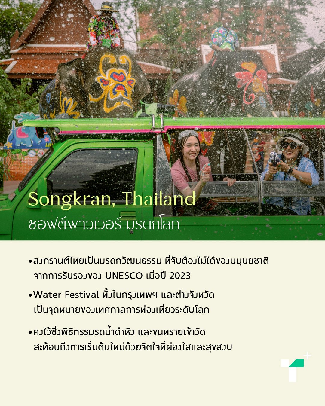Thailand’s Songkran is an intangible cultural heritage recognized by UNESCO in 2023. Beyond being a globally renowned Water Festival destination, it marks a gentle traditional transition into the new year through rituals like pouring water to show respect to elders and the sand temple-building tradition at temples, symbolizing returning earth carried on one's feet back to the Buddhist sanctuary — reflecting a fresh and peaceful new beginning.