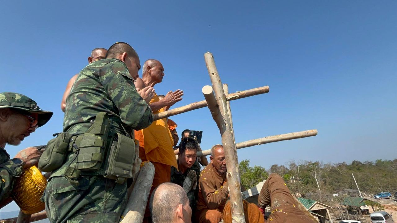 The meaning of Phra Buddha Barami Siam Buri Phithak, towering atop Phu Makuea, is revealed as locals and monks unite in faith to boost morale at this frontline location.