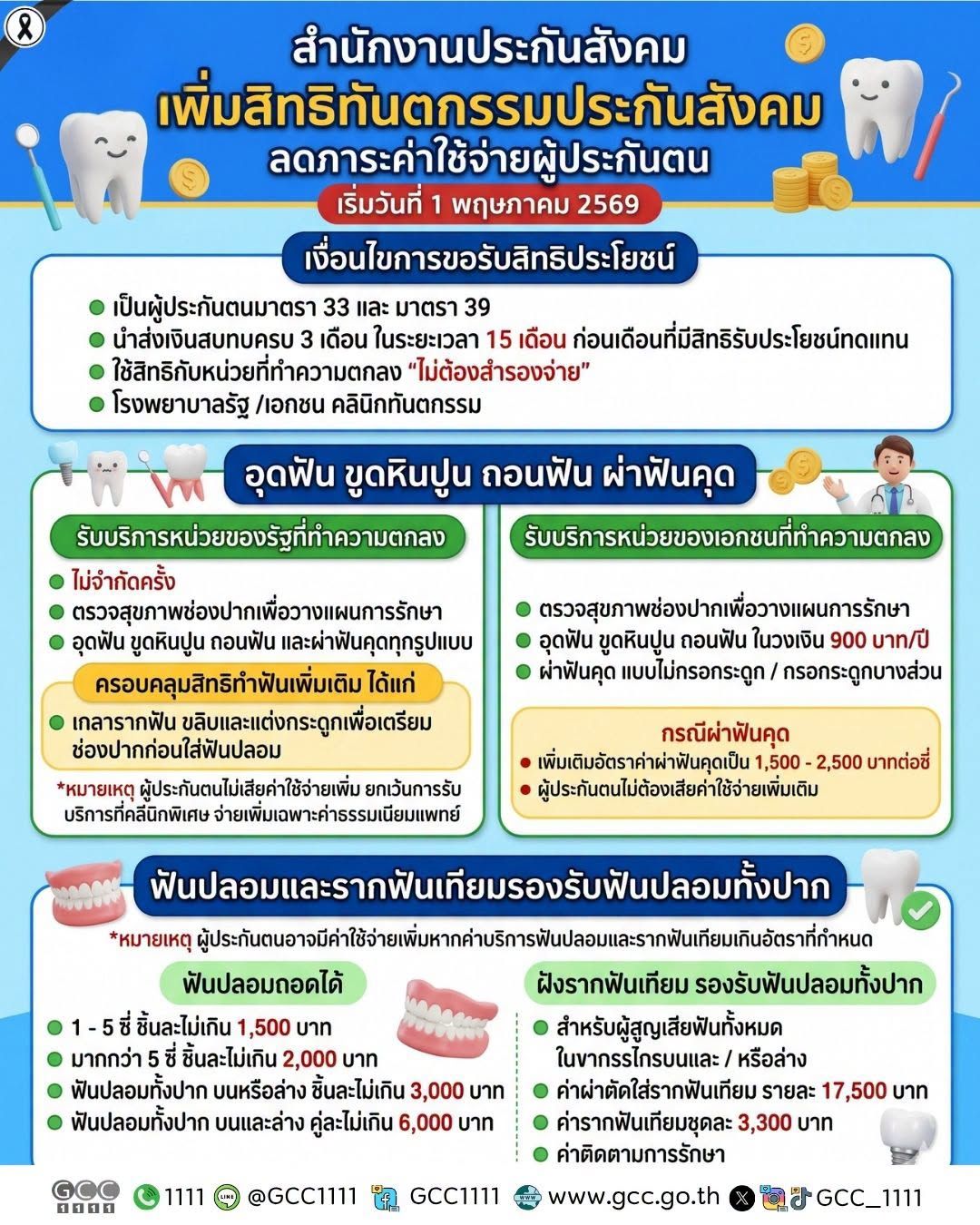 The Social Security Office has announced a major upgrade to dental benefits to help reduce expenses and promote broader access for insured persons to comprehensive oral health care services, effective from 1 May 2026 onward.