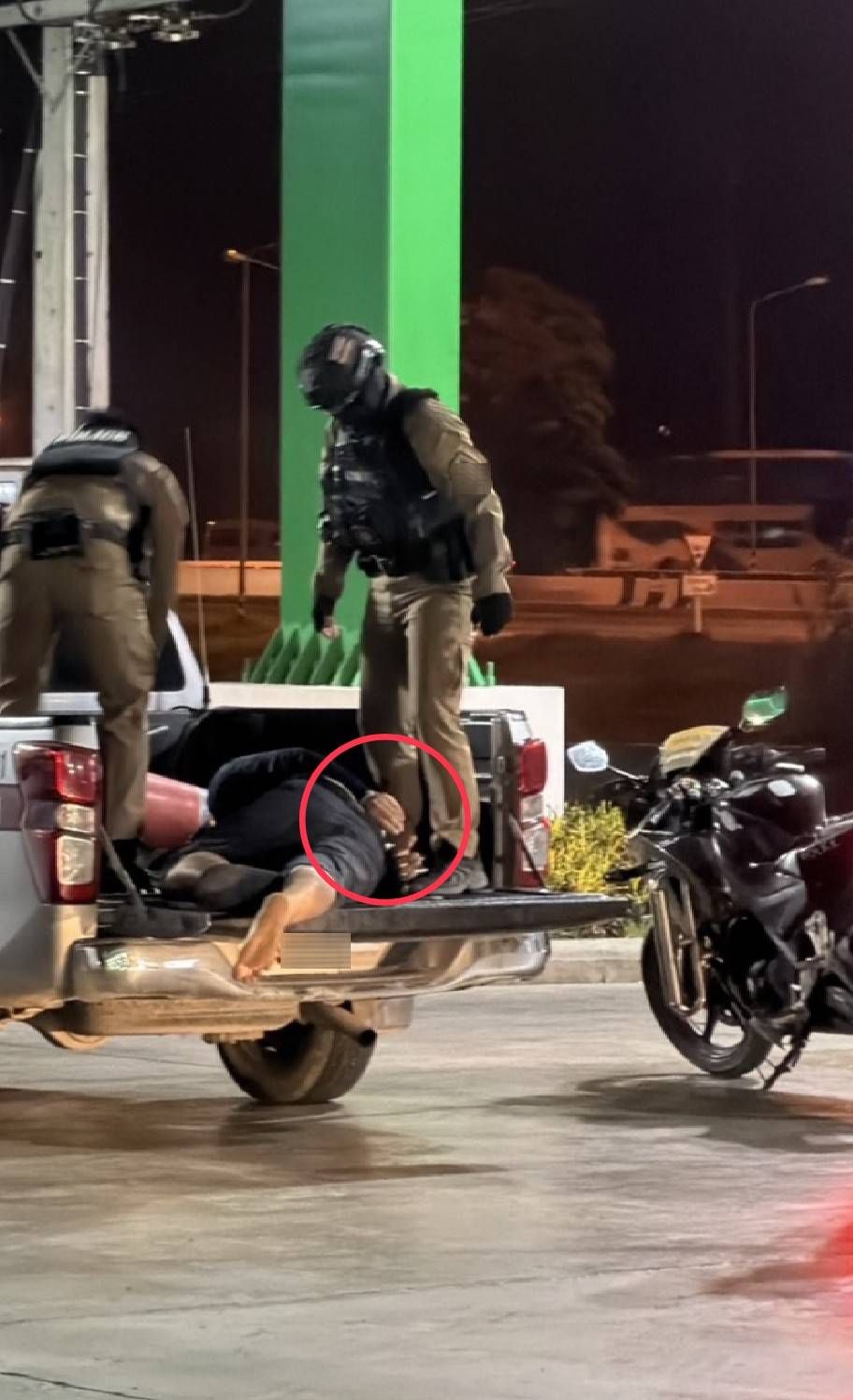 3. Arrest: Patrol officers arrived around 03:50 and assessed that the driver appeared heavily intoxicated. They handcuffed him and placed him in a police pickup truck to take him to Bang Pahan Police Station without conducting any breathalyzer test or evaluating his medical condition at the scene.