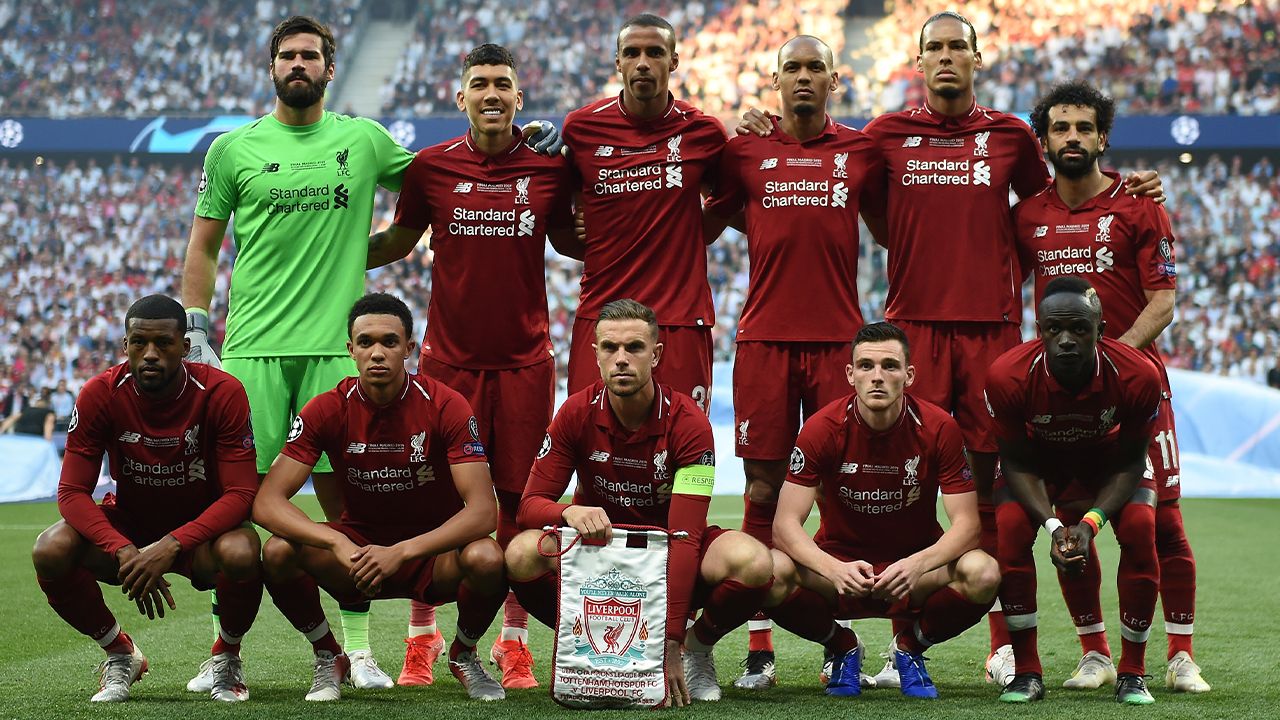 A photo of the players lined up before the 2018-19 Champions League final, where Liverpool defeated Tottenham Hotspur 2-0 to claim the club's sixth European title and ignite the greatest "golden era" at Anfield in 30 years.