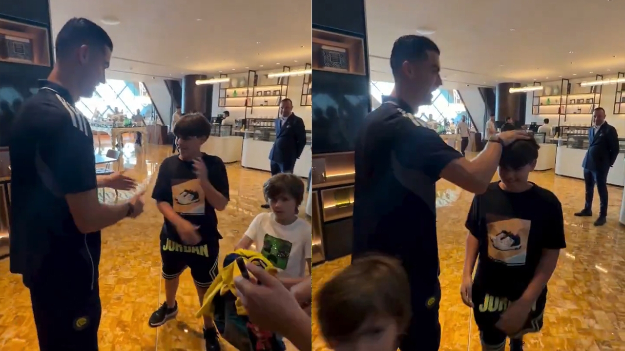 But the highlight was yet to come. The young fan made one more request—to see Ronaldo perform his signature "Siuuu" celebration. The famous Portuguese player gladly obliged, enthusiastically giving his full celebration style.