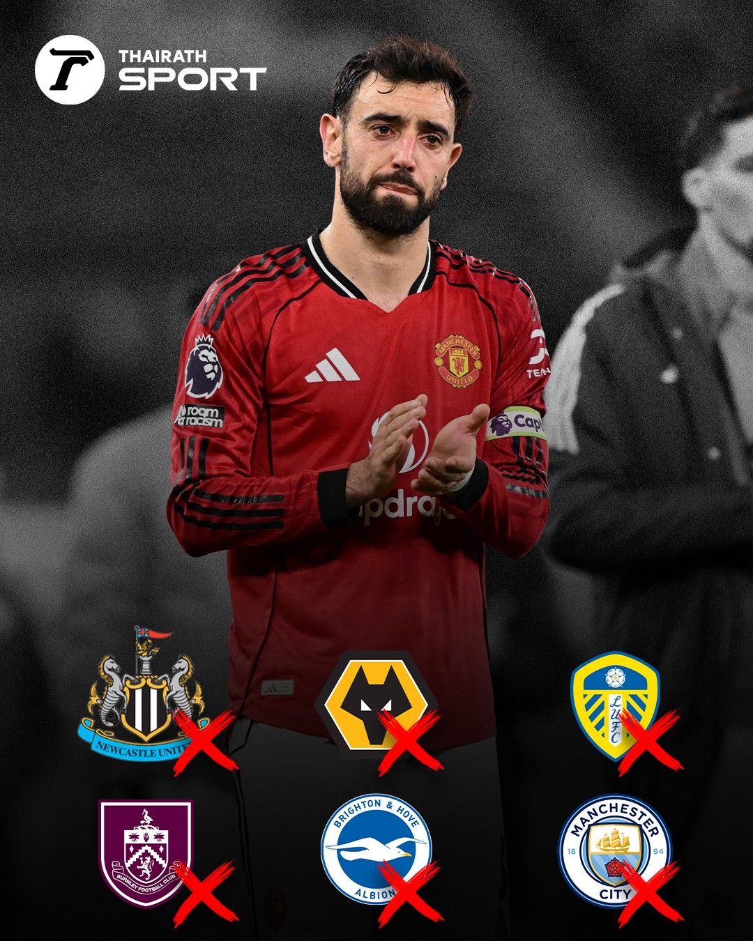 Bruno's absence is a severe blow for Rúben Amorim as he is the team's top performer this season, with 5 goals and 7 assists in 17 league matches, and has never missed more than two consecutive games since joining Old Trafford.