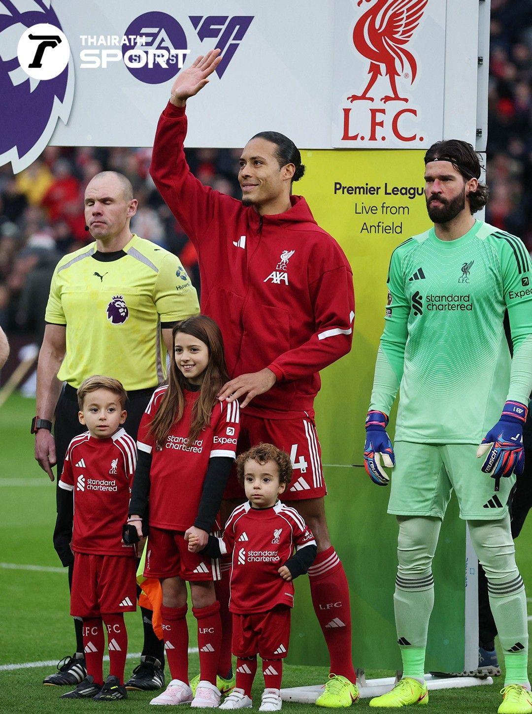Before the whistle to start the game, Diogo Jota's children, honoring the late footballer, were given the privilege to walk onto the pitch alongside Liverpool captain Virgil van Dijk.