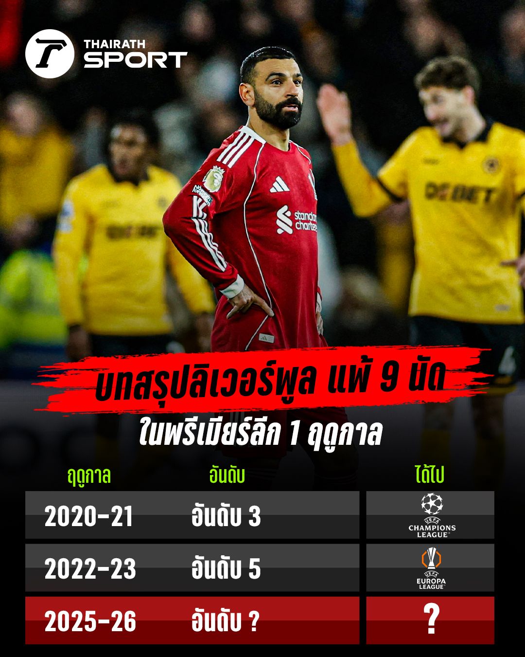 Trouble looms as ominous signs suggest "Liverpool" may miss out on the UCL after their latest Premier League loss to Wolves.