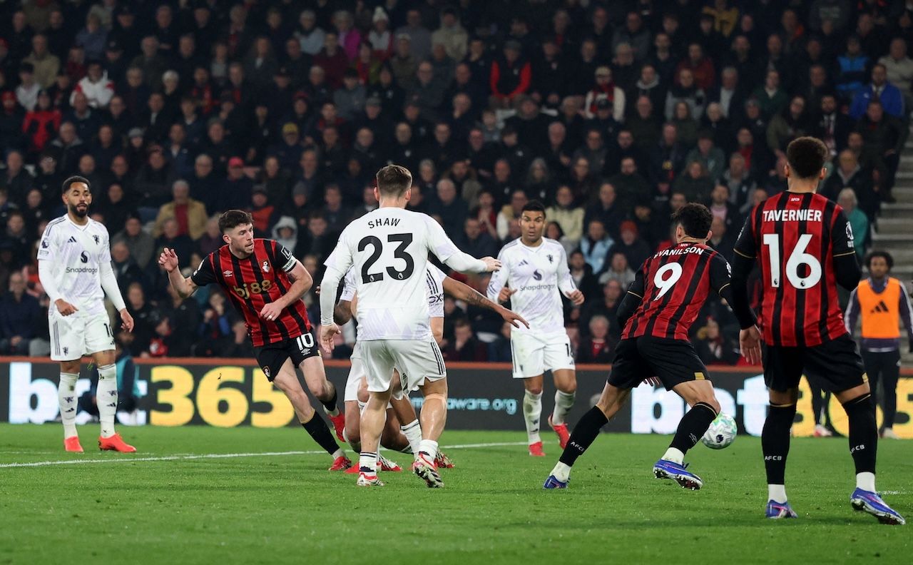 However, referee Stuart Attwell did not award a penalty and signaled for Bournemouth to continue. Shortly after, Adrien Truffert, who had blocked Amad Diallo, advanced and assisted Ryan Christie to equalize 1-1.