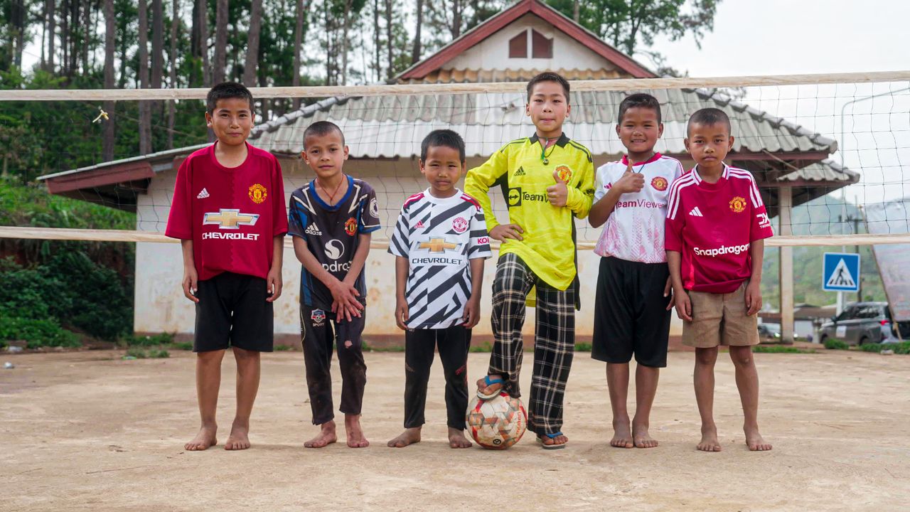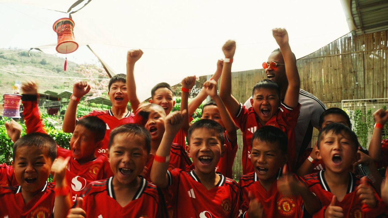 Manchester United teams up with DHL to create a dream stage amidst the mountains, transforming an artificial turf football pitch for children in Mae Chaem. Bruno sends a video of encouragement and donates shirts to the Thai children.