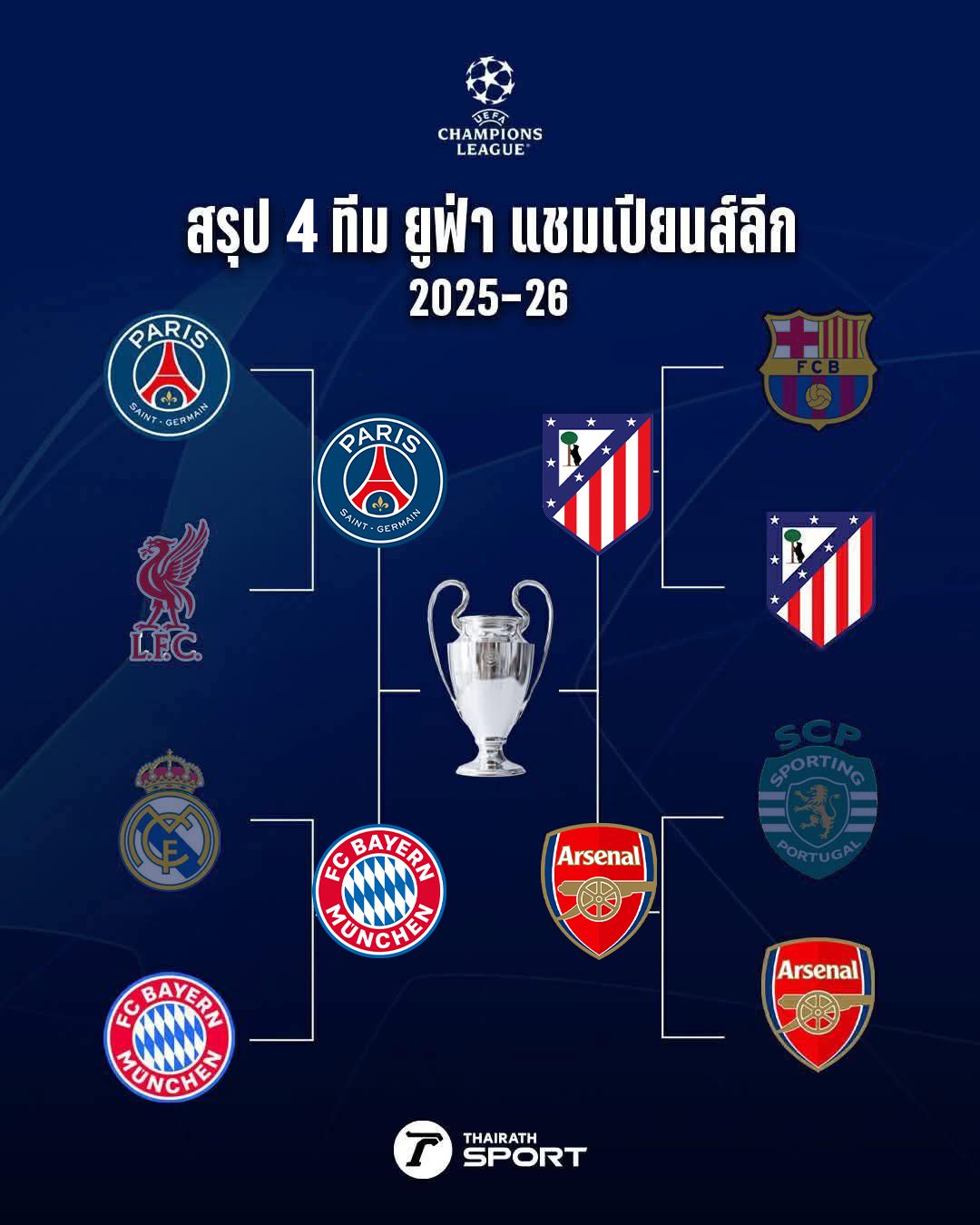 On 16 April 2026, the four teams advancing to the UEFA Champions League 2025-26 semi-finals were confirmed after all quarter-final matches concluded.