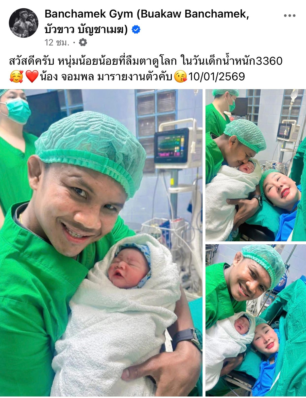 Buakaw posted on Facebook: “Hello, little boy who opened his eyes to the world on Children’s Day, weighing 3,360 grams 殺❤️ Little Jompol reporting in 10/01/2026.”