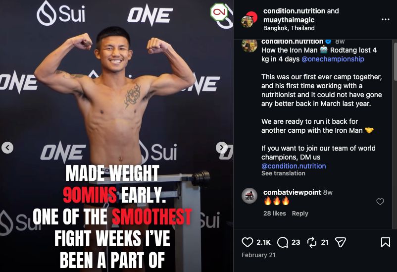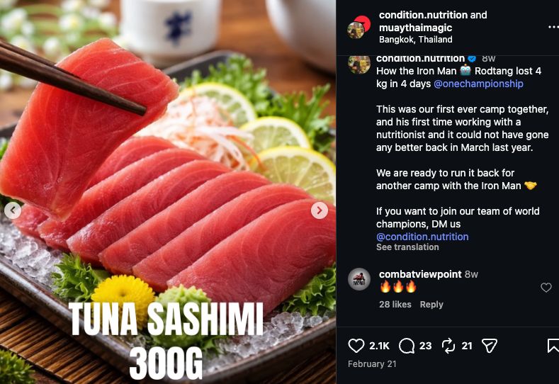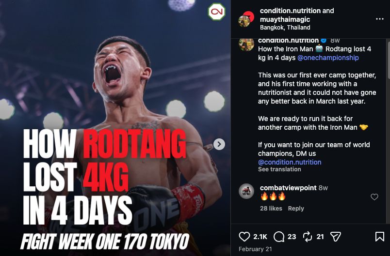 Peter Miller, Tank’s nutritionist, previously posted about the plan to help Tank lose 4 kilograms in 4 days for ONE 172, the first Tank vs. Takeru fight.