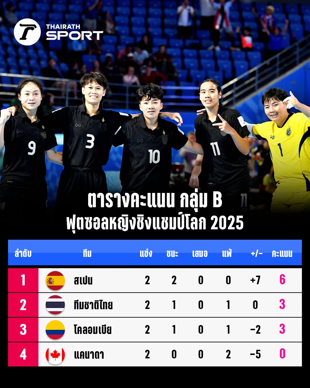 On 25 November 2025, the second matchday of the first round in Group B of the 2025 Women's Futsal World Cup concluded. The Thailand women's national futsal team, ranked 4th in the world, secured their first-ever victory in the history of their participation in this inaugural tournament.