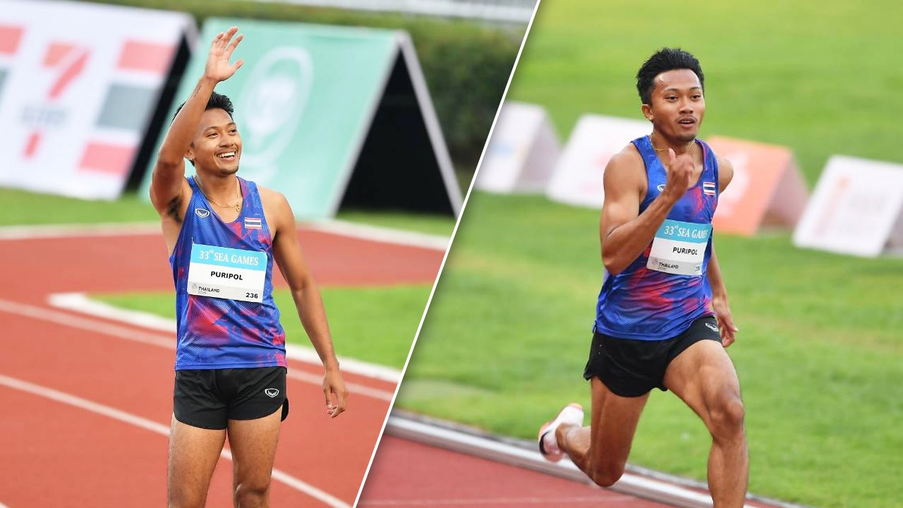 Puripol Boonsorn crossed the finish line first in the men's 100m qualifying round at SEA Games 2025.