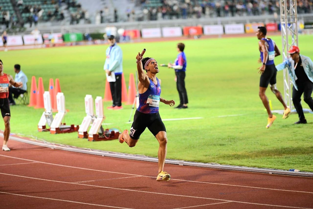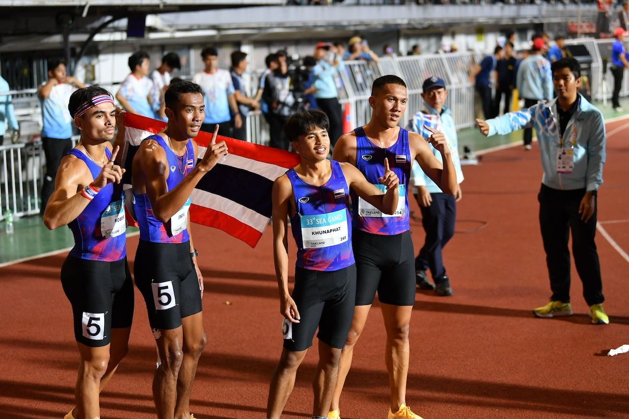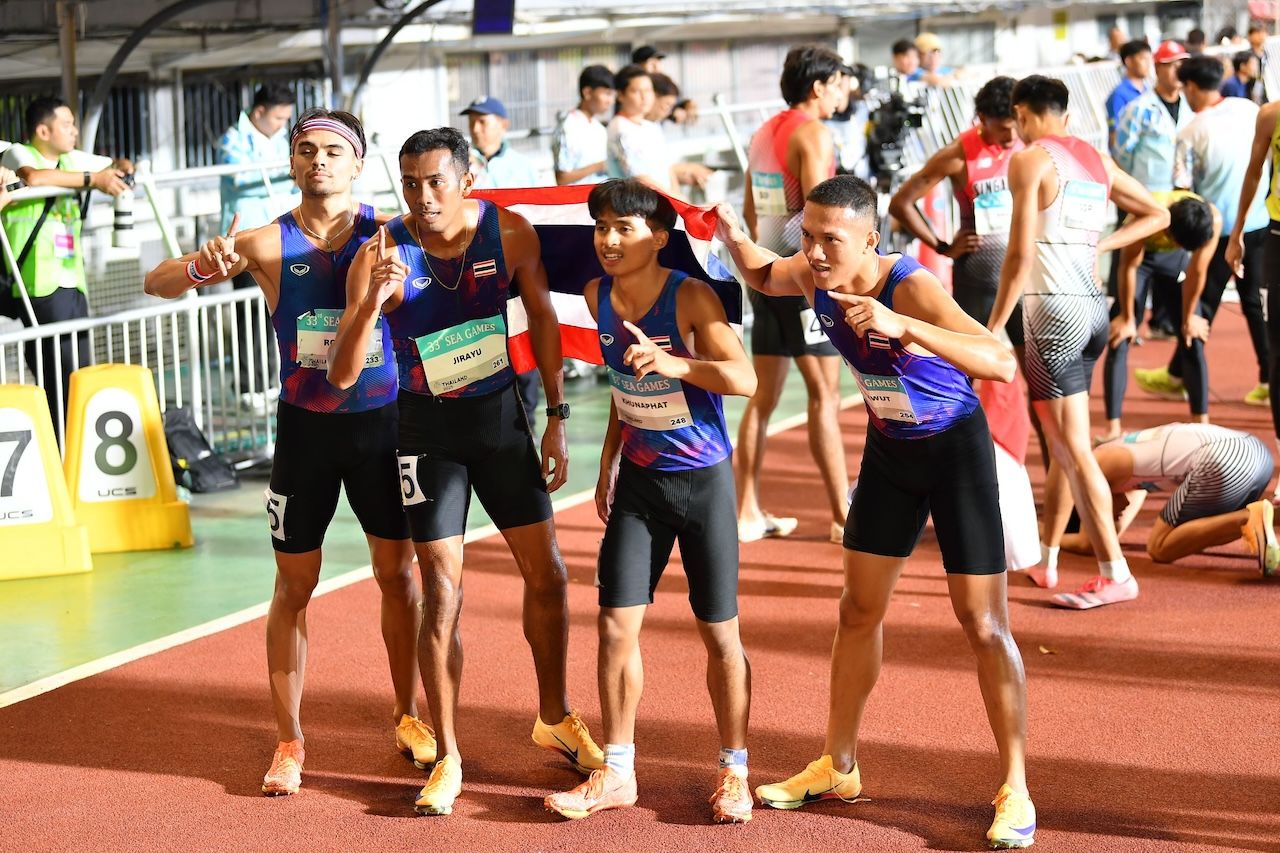 The Thai athletics team triumphed, winning gold in the men's 4x400 meter relay after Joshua Robert Atkinson, a Thai-Australian dual heritage athlete, accelerated during the final leg to overtake Vietnam in the last 100 meters straight, finishing first.