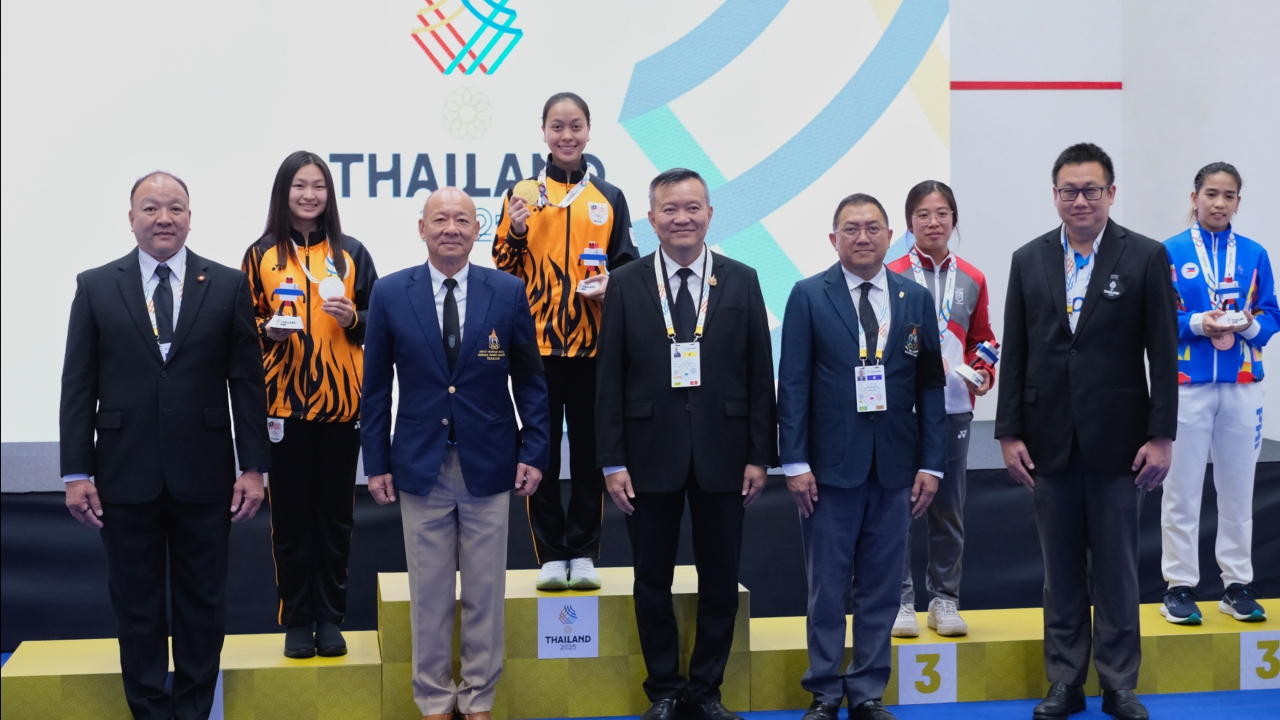 At the 33rd SEA Games squash competition held at the squash courts of Vajiravudh College, four gold medals were contested: men's singles, women's singles, men's doubles, and mixed doubles. Malaysian athletes showcased outstanding performances, sweeping all four gold medals, while Thai squash players fell short against their experienced opponents, missing out on medals in every event.