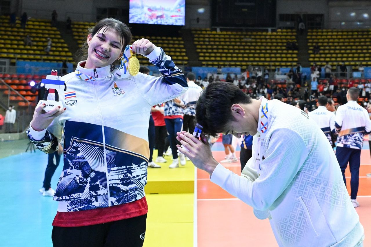 Catherine Catherine Magenti, interpreter for Coach Park Ki Won's Thai men's volleyball team, and Alfin Daniel, an Indonesian national volleyball player, took a photo together after the medal ceremony. Their smiles and friendly atmosphere prompted Indonesian media to jokingly comment, “When your loved one is on the opposing team, there's no way to win.”