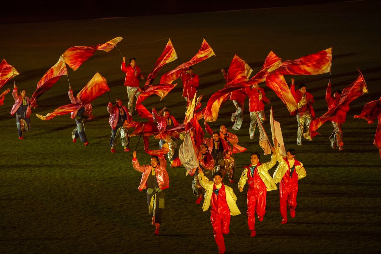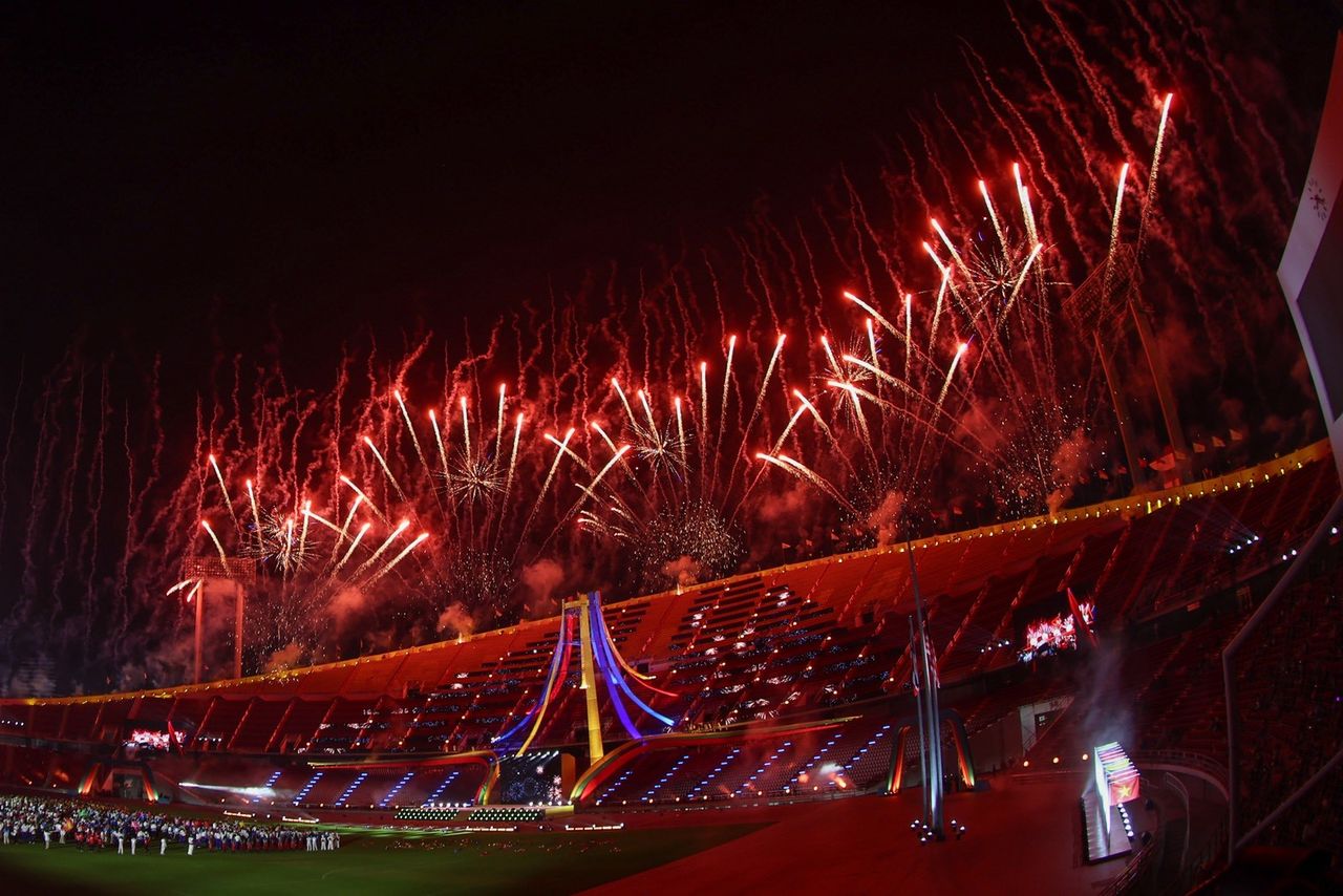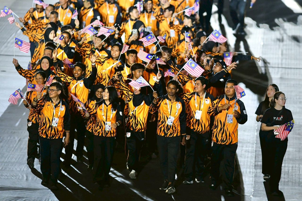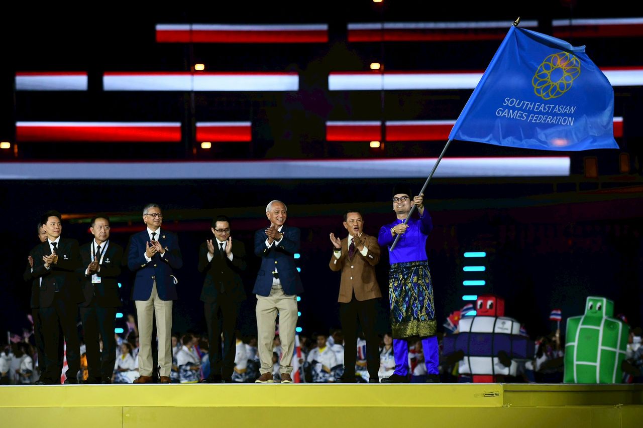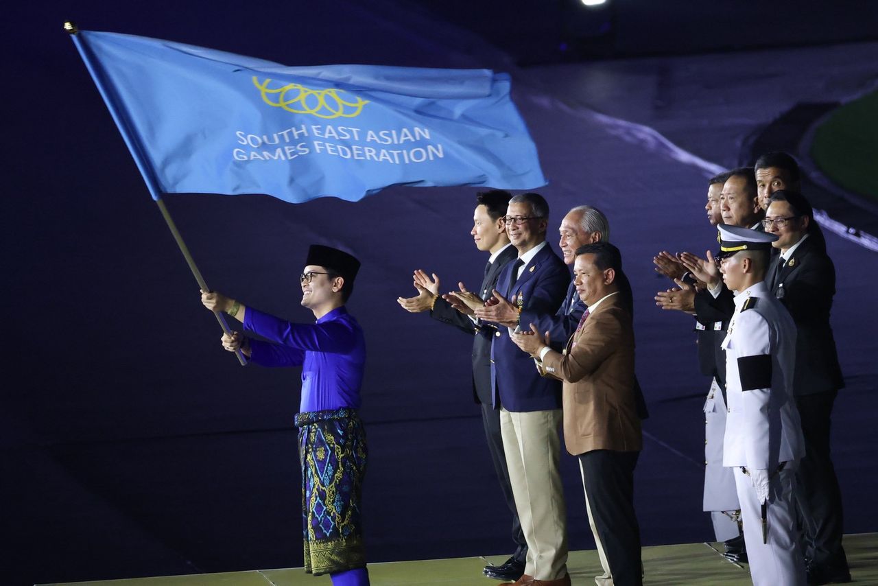 The Malaysian national flag was then raised to the top of the pole as their national anthem played, followed by a performance by the next host nation. The ceremony concluded with the celebratory closing shows "Rhythm of Harmony," symbolizing unity, and the farewell performance "The Sound of Champions… The Song of Winners."
