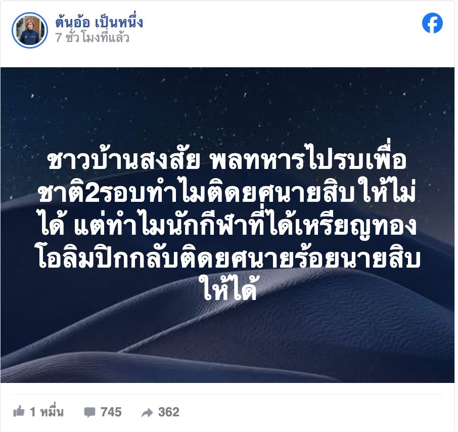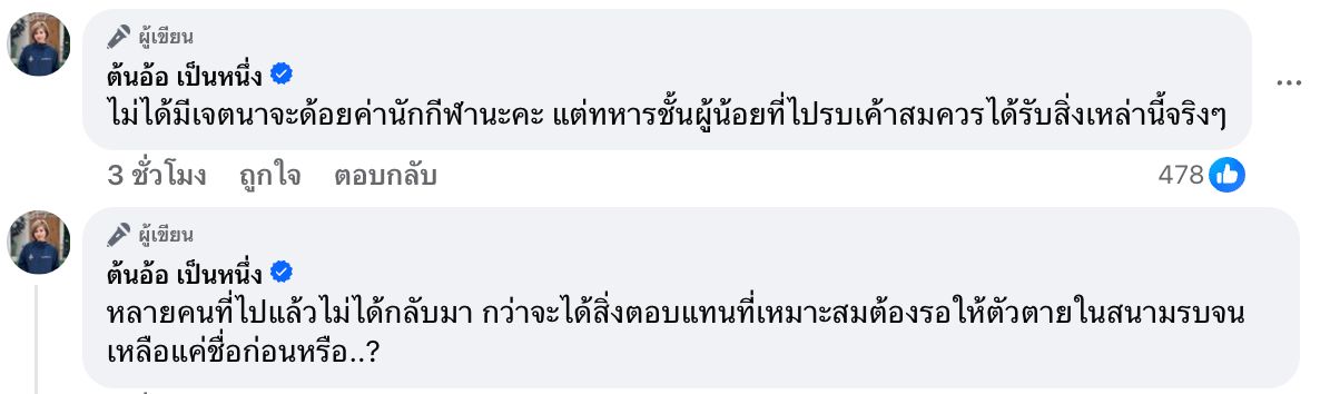 However, "Ton Or Pen Nueng" added, "We do not intend to belittle athletes, but the low-ranking soldiers who fought truly deserve these recognitions."