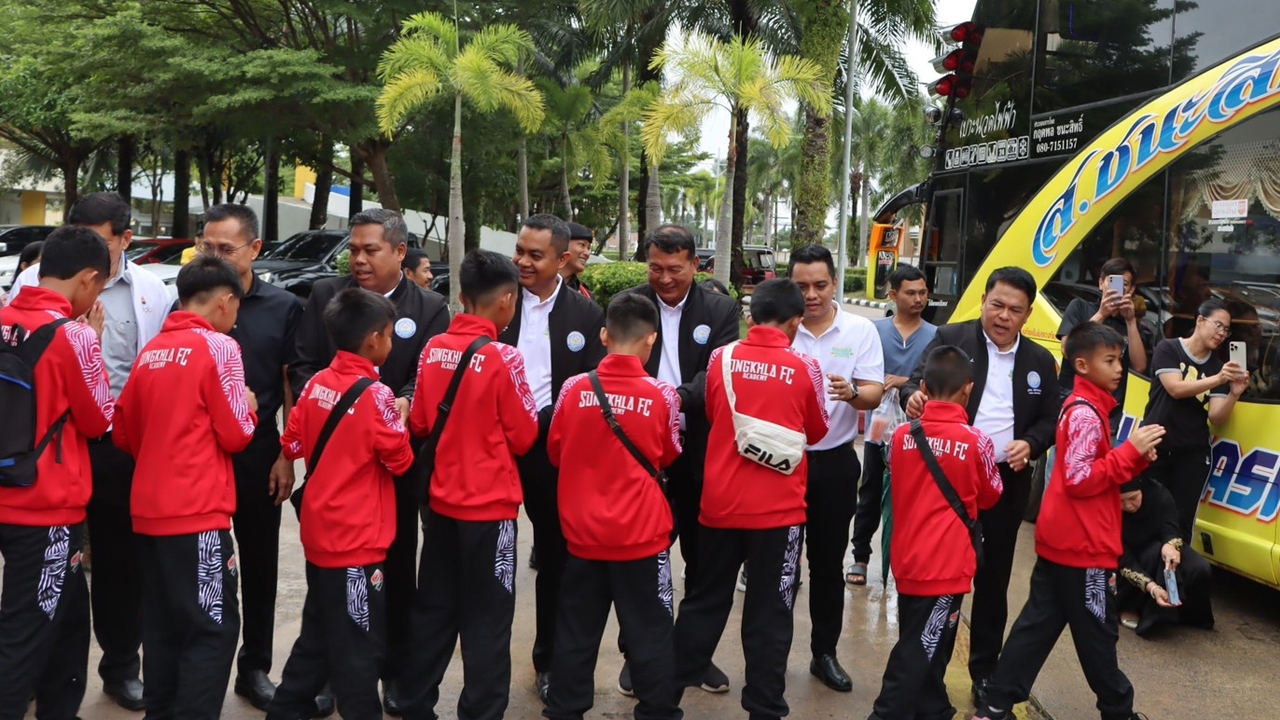 Before departure, the youth football team from Hat Yai was honored by Mr. Supis Pitaktham, President of the Songkhla Provincial Administrative Organization, Mr. Thanit Thongsuk, Secretary of the Songkhla Provincial Administrative Organization, and Mr. Thawisak Aranadon, Chairman of the Songkhla Provincial Administrative Organization Council, who came to send off and encourage the players and coaches at the Songkhla Provincial Administrative Organization office amid a warm and proud atmosphere. They praised the dedication and talents of the youth preparing to bring honor to Songkhla at the international level.