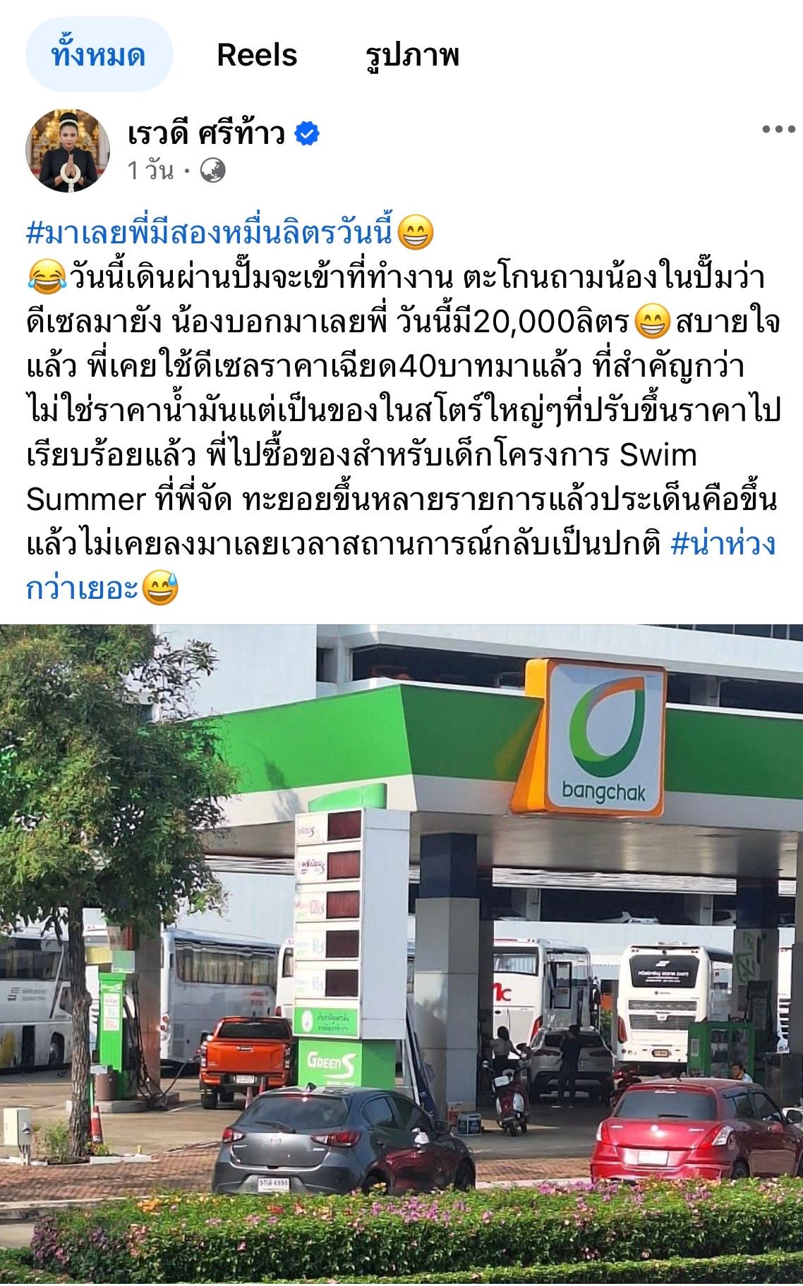 However, before the official 6 baht per liter price increase, Rewadee Srithao, former Thai national track athlete, posted that while oil prices fluctuate up and down, the more important issue is that product prices rise but never decrease accordingly.