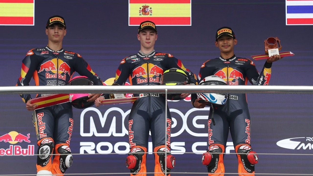 Kiattisak Singhapong braved intense rain to clinch a podium spot in the thrilling season-opening first race of the 2026 Red Bull MotoGP Rookies Cup in Spain.
