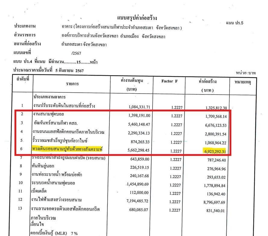 However, reviewing the construction price evaluation documents revealed that the elbow-shaped running track is part of the "walkway around the stadium covered with synthetic rubber," estimated at 6,923,292.3 baht.
