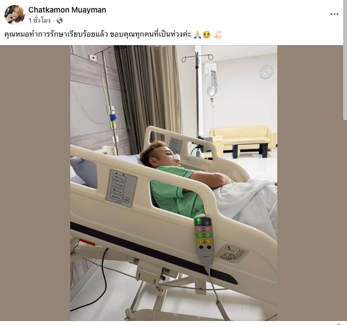 Recently, Facebook user Chatkamon Muayman, Theerathon "Ko Udom"’s wife, posted: "The doctor has completed the treatment. Thank you all for your concern."